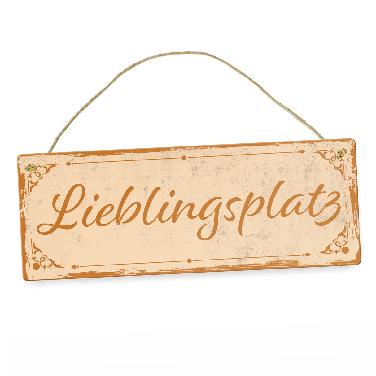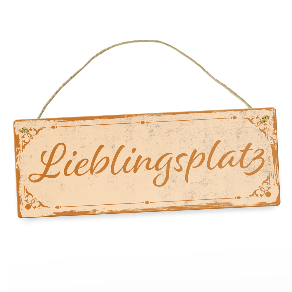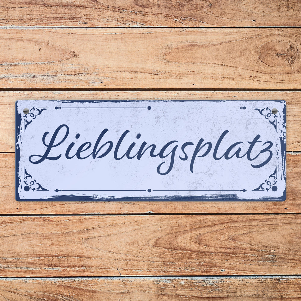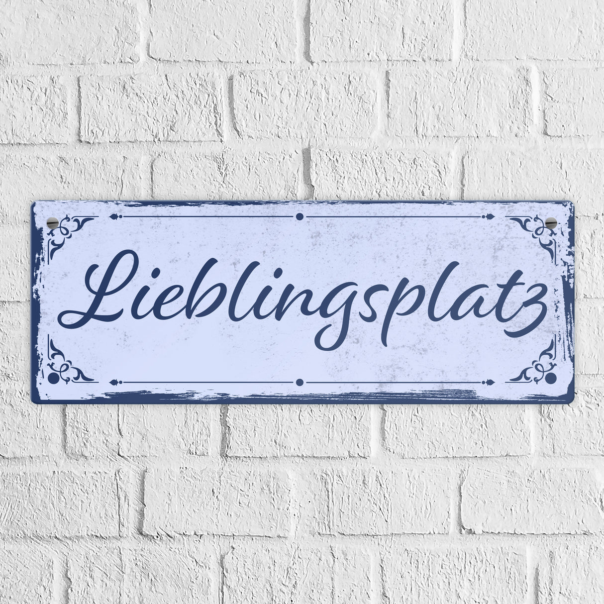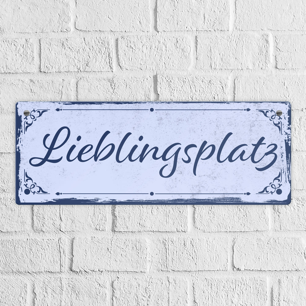 - 1x Metallschild mit schönem Design - Lieblingsplatz im rustikalen Stil in Braun in der gewählten Größe