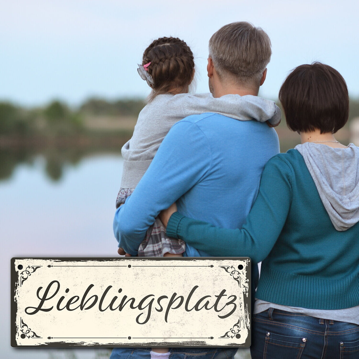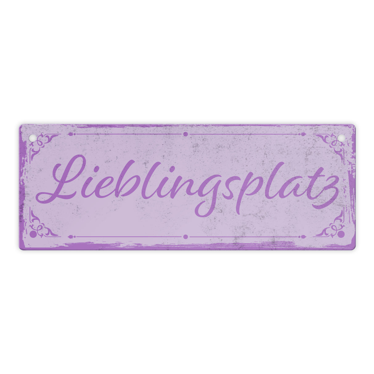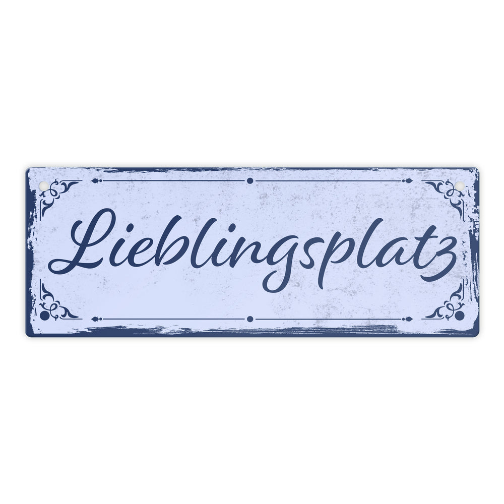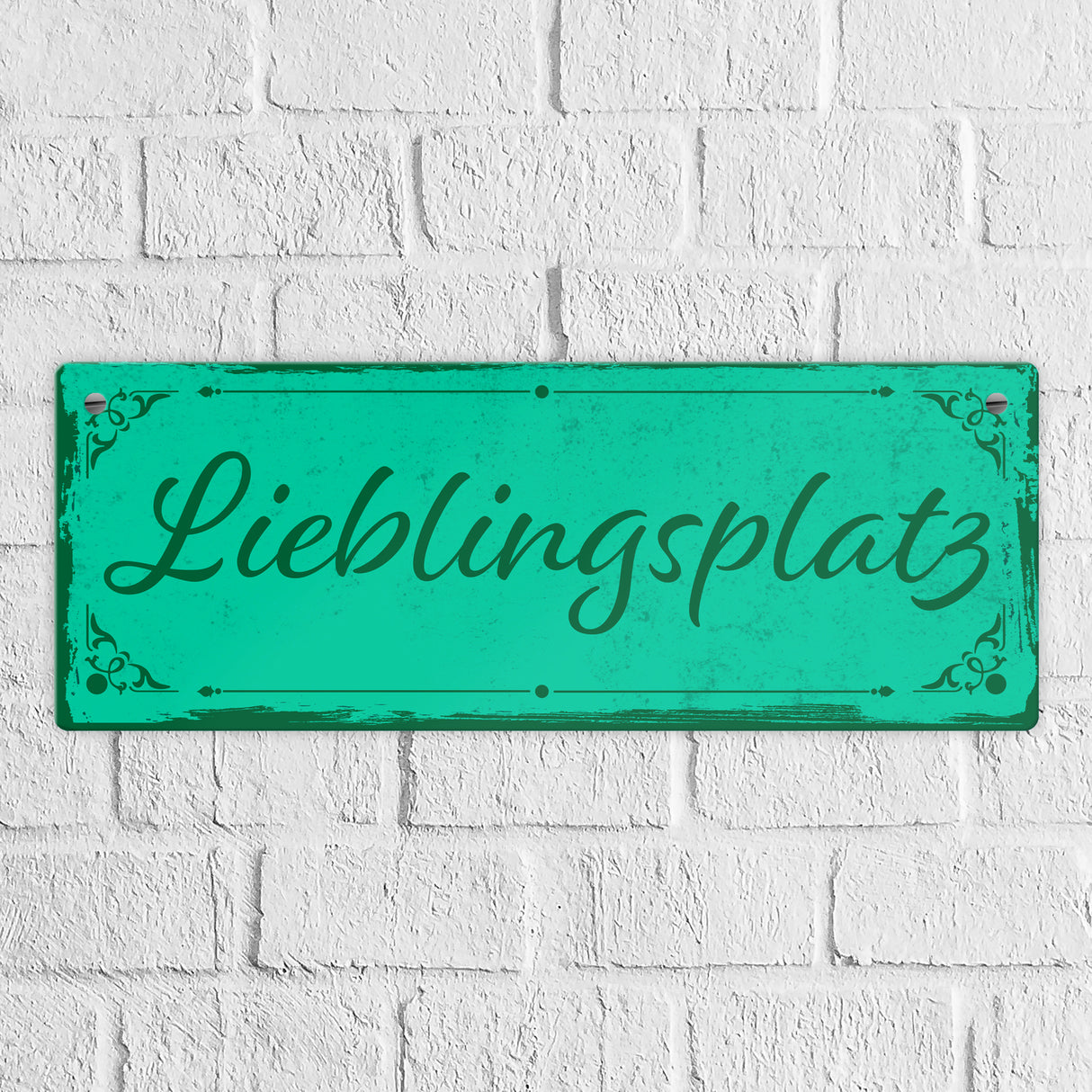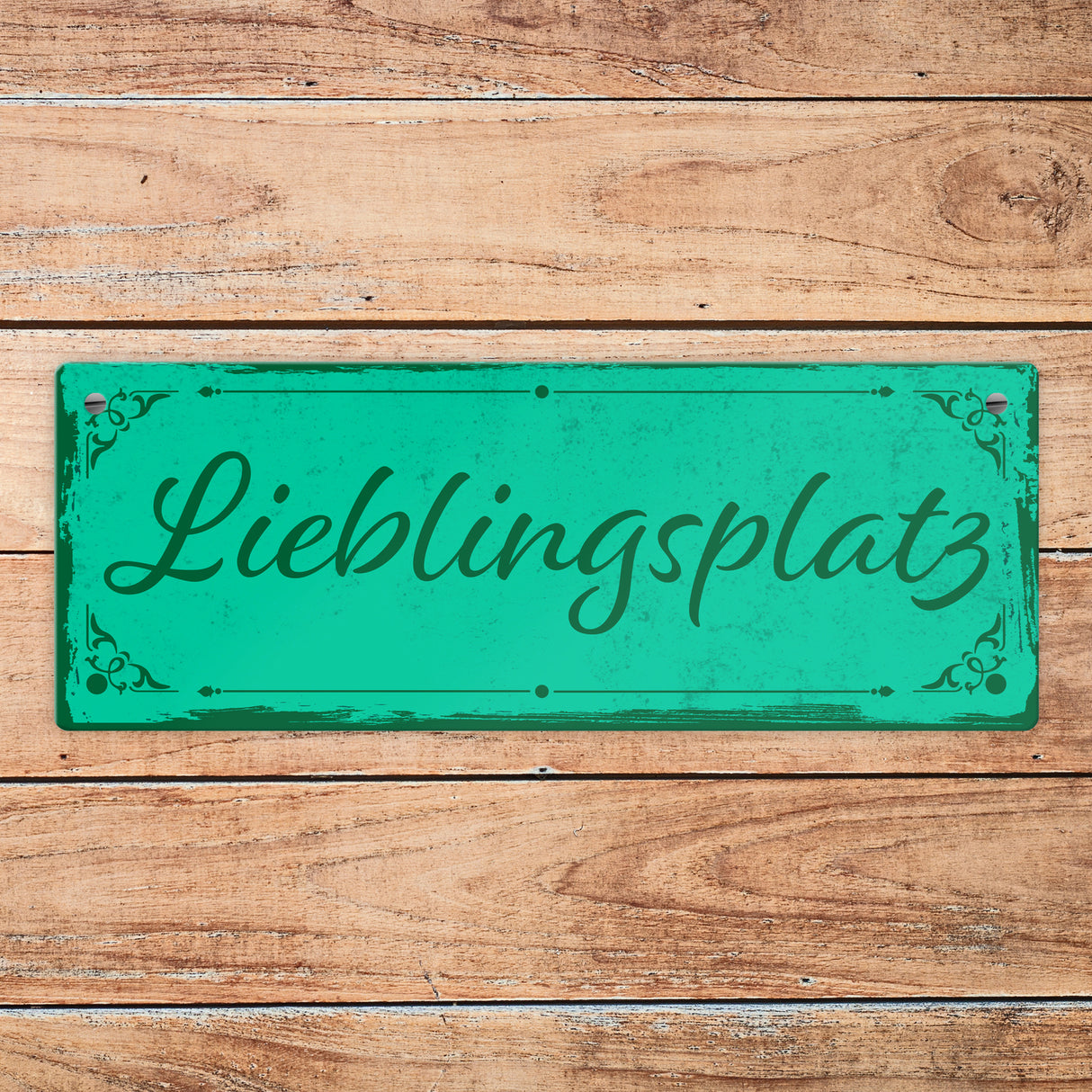 - 1x Metallschild mit schönem Design - Lieblingsplatz im rustikalen Stil in Braun in der gewählten Größe