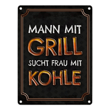 Mann mit Grill sucht Frau mit Kohle Metallschild