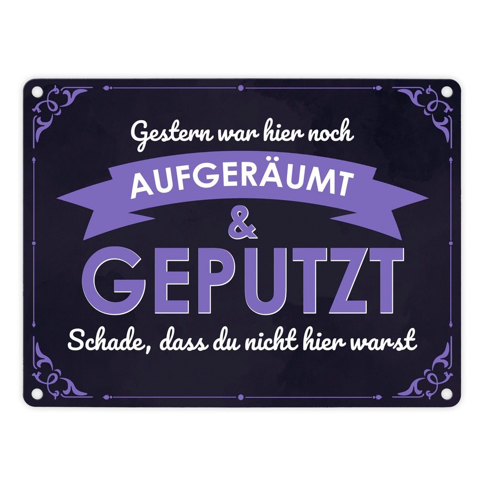 - 1x Metallschild mit Spruch - Gestern war hier noch aufgeräumt & geputzt in der gewählten Größe