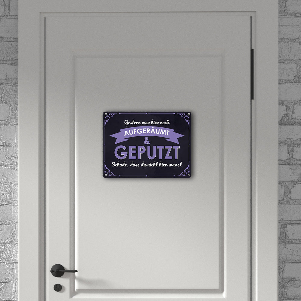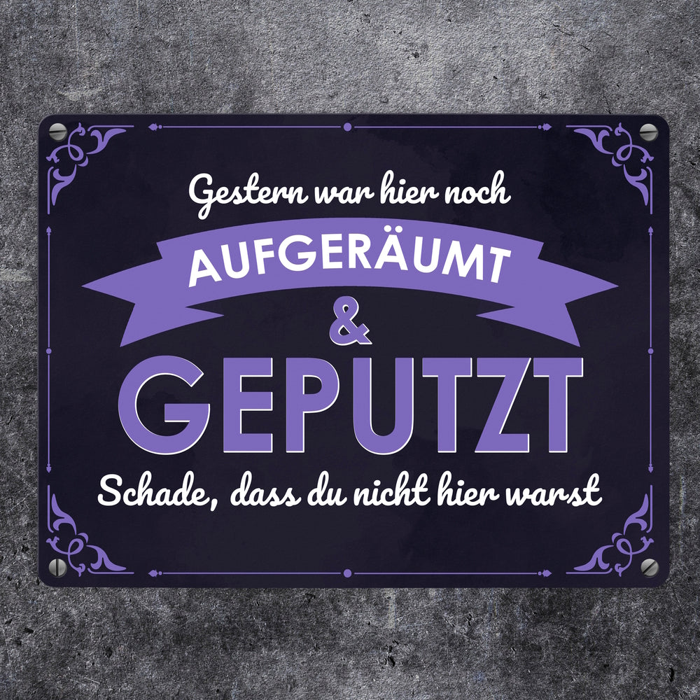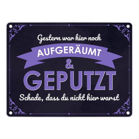 Metallschild mit Spruch - Gestern war hier noch aufgeräumt & geputzt