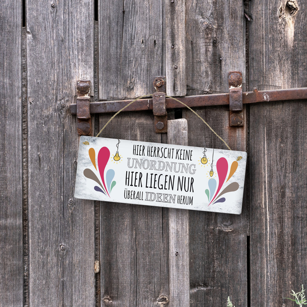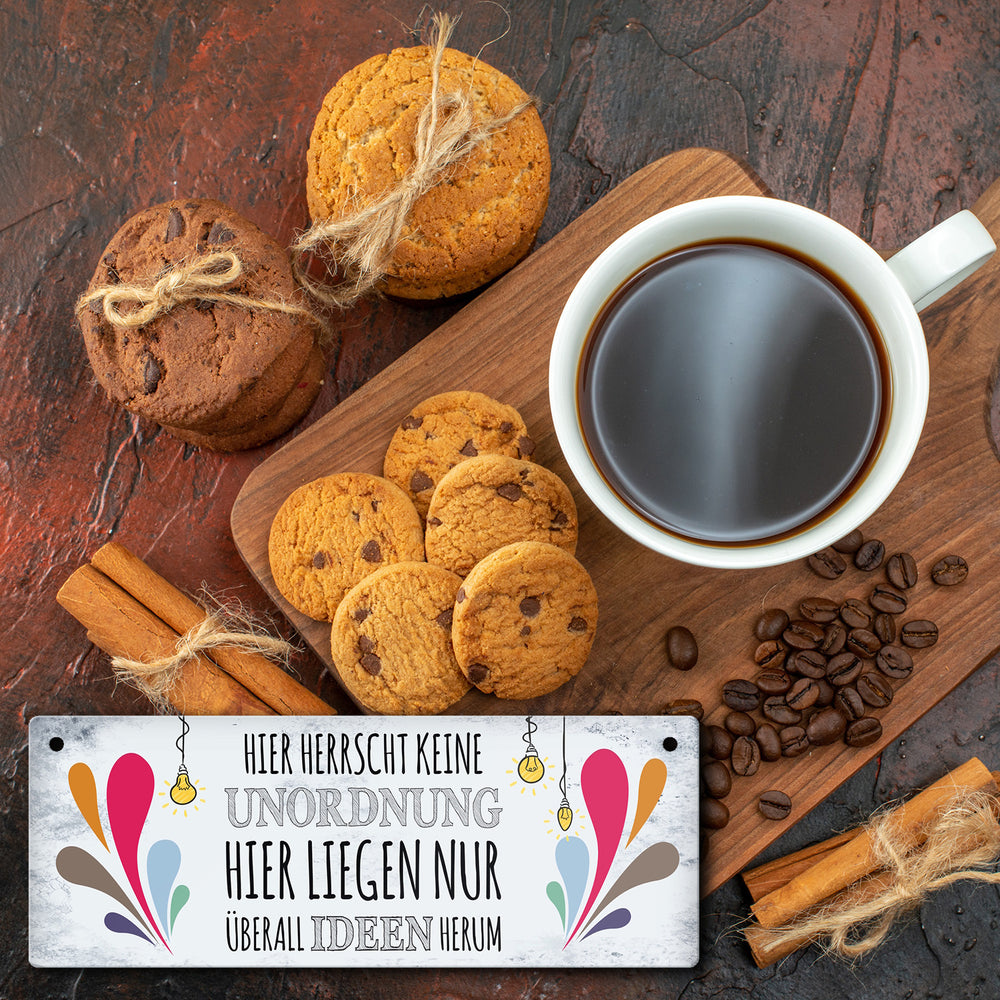 - 1x Metallschild mit Spruch: Hier herrscht keine Unordnung, ... in der gewählten Größe