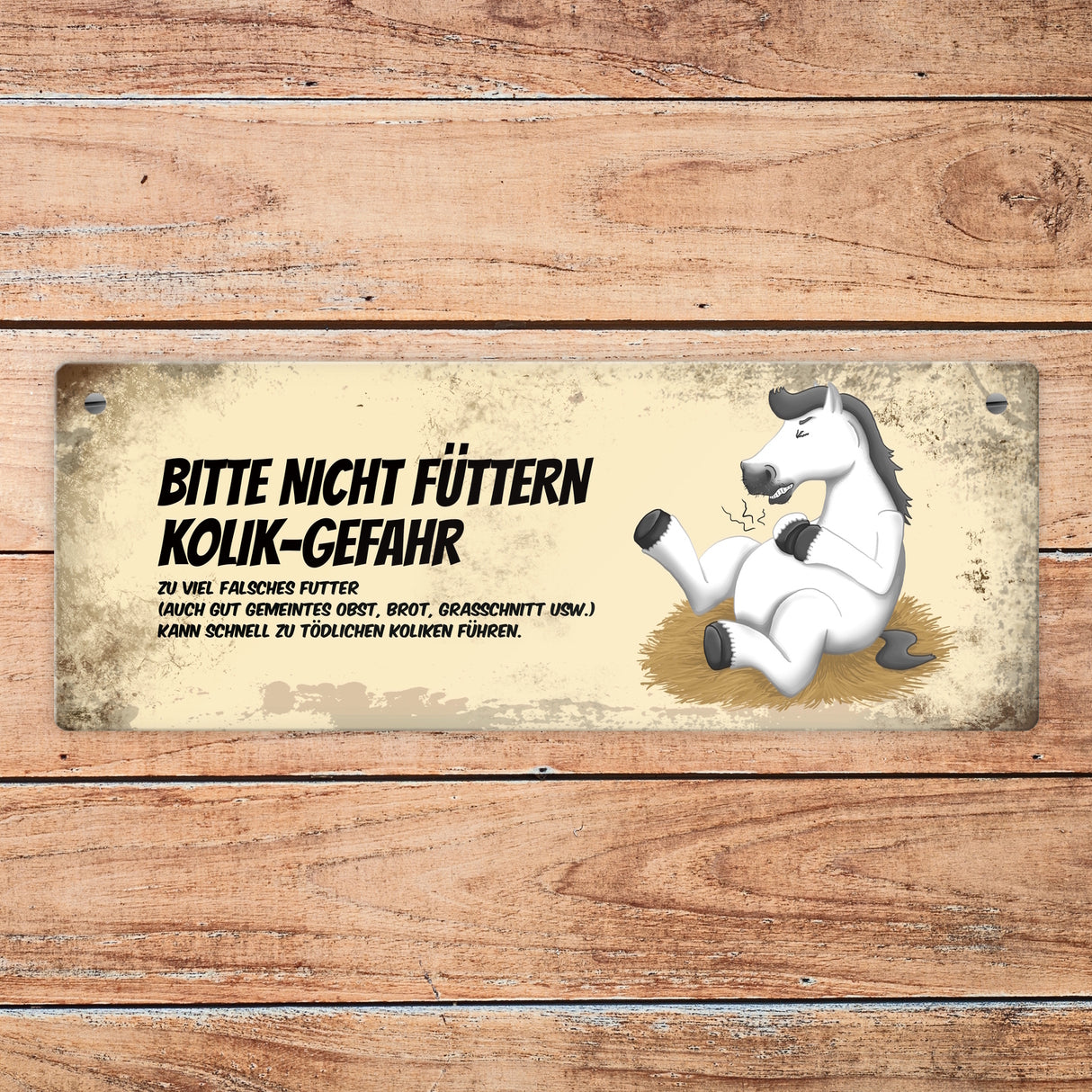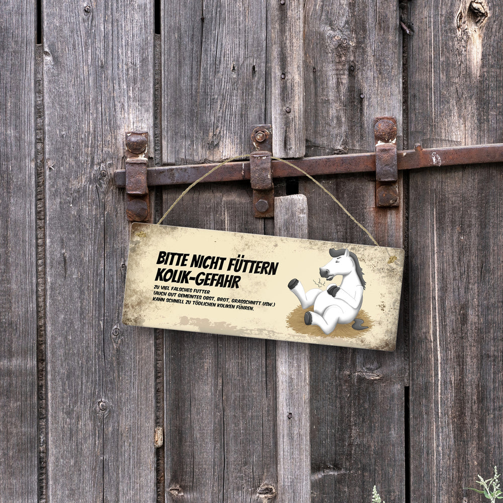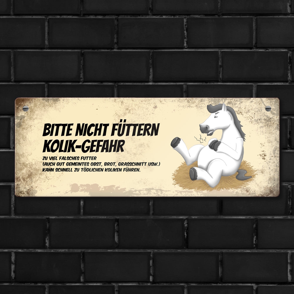 Metallschild mit Pferde Motiv und Spruch: Bitte nicht füttern - Kolik-Gefahr