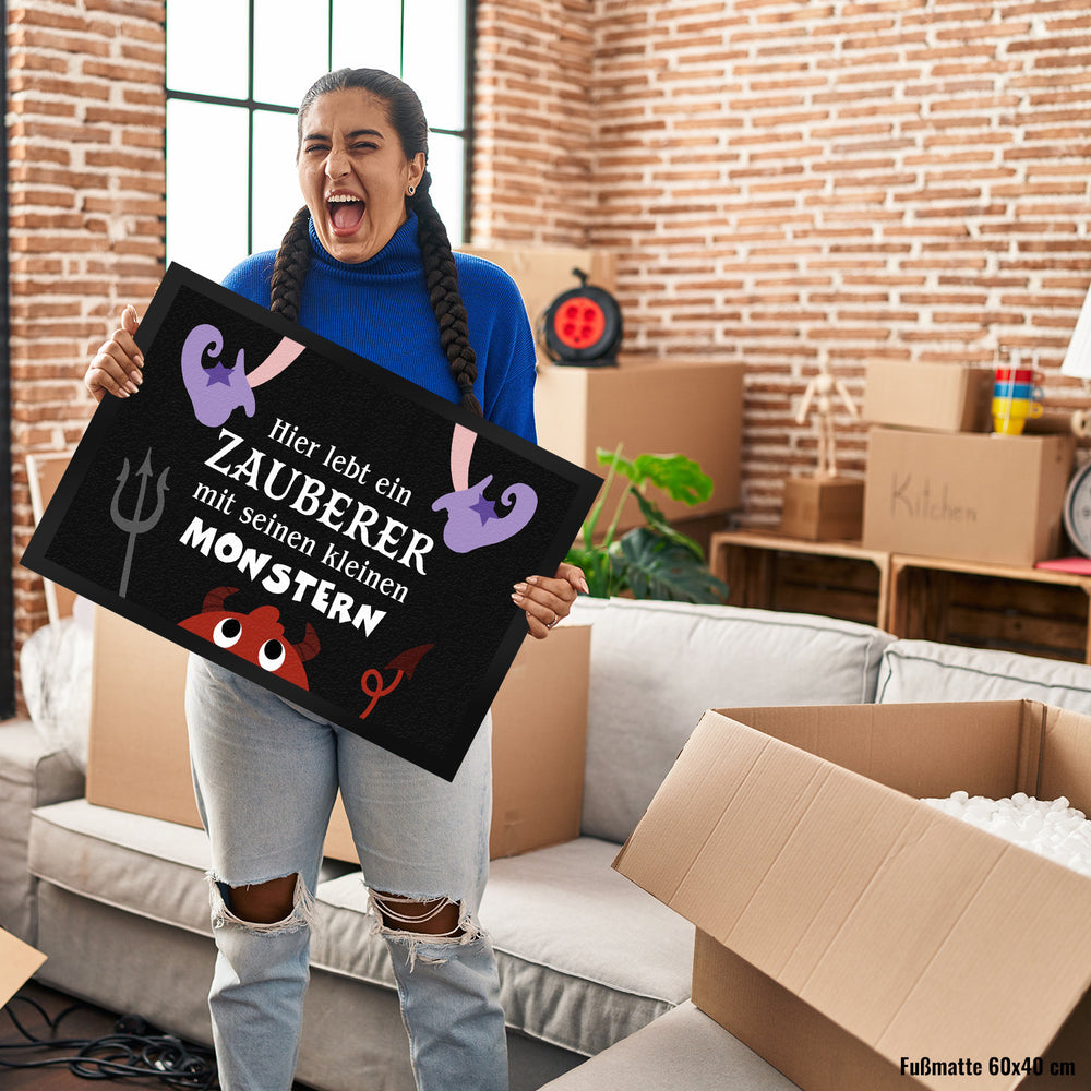 Monster Fußmatte in 35x50 cm mit Spruch Hier lebt ein Zauberer