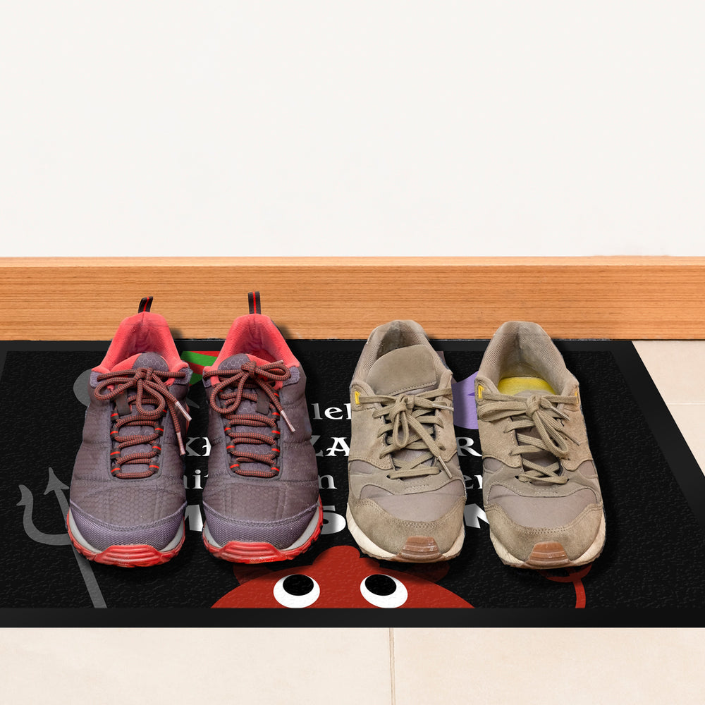 - Gestalten Sie mit unserer lustigen Fußmatte Ihr Zuhause ganz im Halloween-Style! Mit dem Monster- und dem Hexen-Motiv ist die Türmatte eine originelle Geschenkidee für Freunde oder Familie. Der Spruch begrüßt jeden Besucher und sorgt zudem für mehr Sauberkeit in der Wohnung.