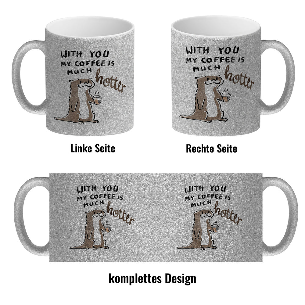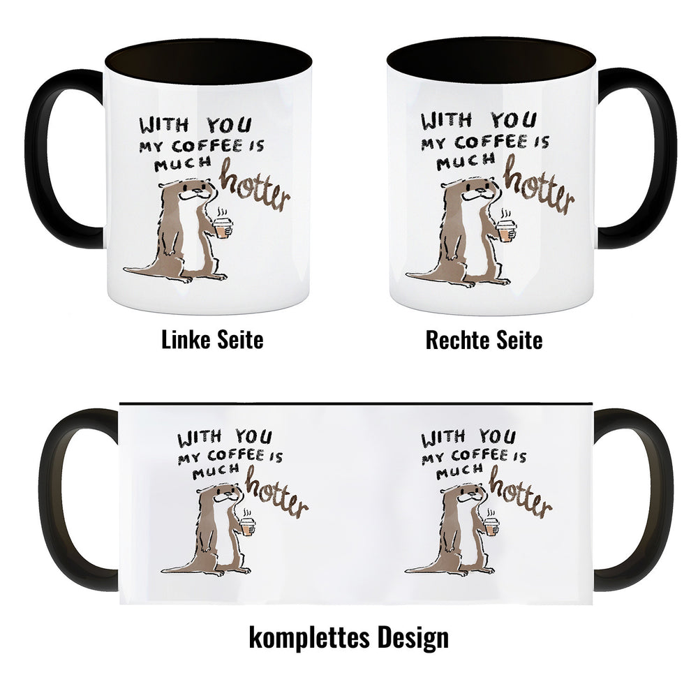 • 1x Otter Kaffeebecher mit Spruch With you my coffee is much hotter in der gewählten Ausführung