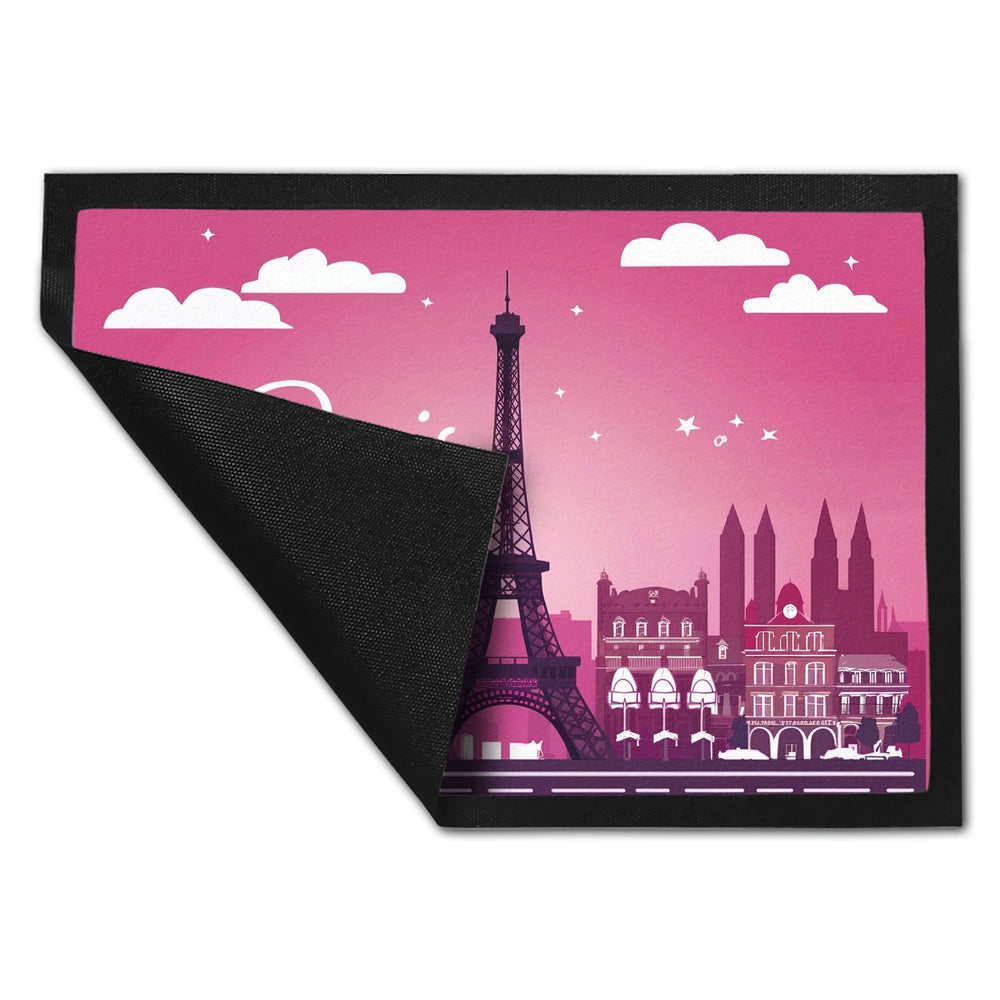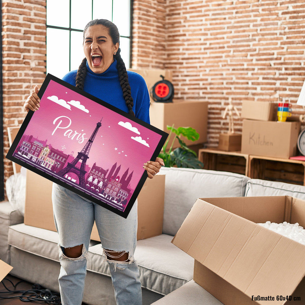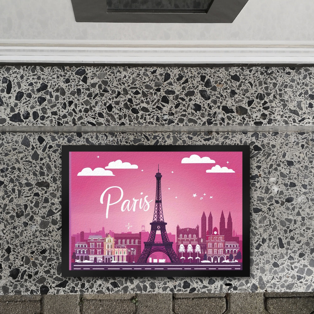 - Bonjour! Bereiten Sie Ihrem Eingangsbereich ein glamouröses Update mit der Fußmatte "Pariser Skyline"! Diese farbenfrohe Matte zeigt die weltberühmten Pariser Wahrzeichen in einem charmanten rosa Design. Perfekt für Paris-Liebhaber!