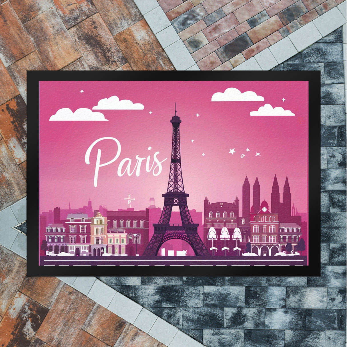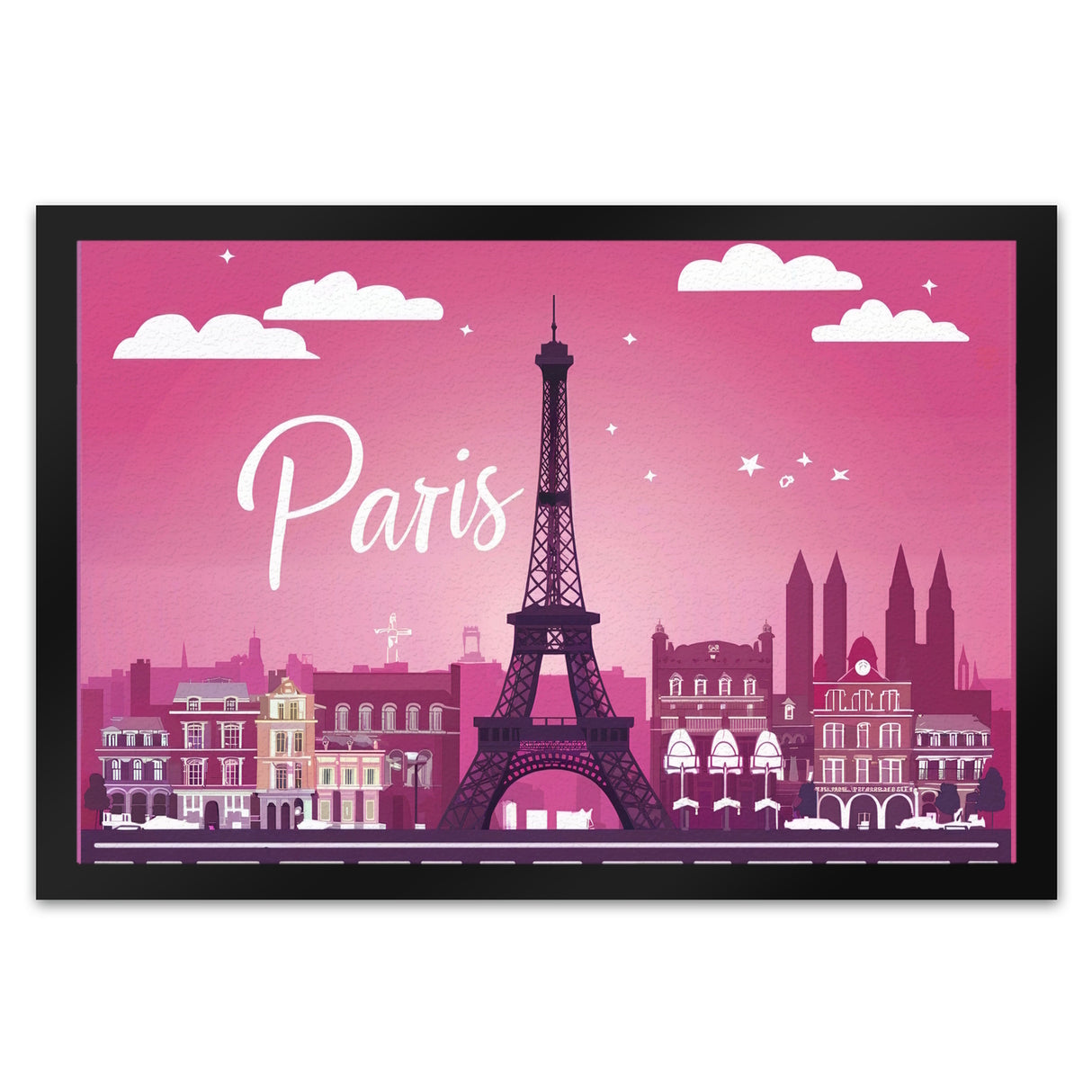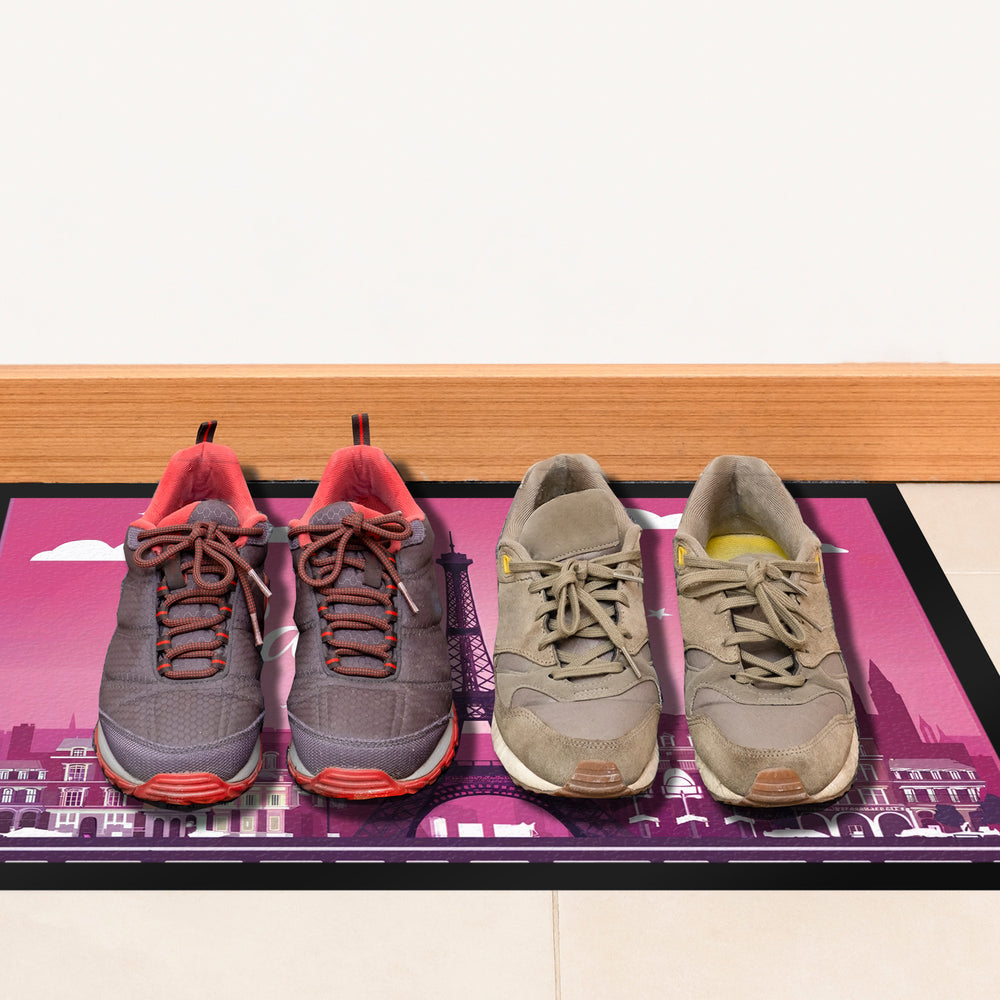 - Bonjour! Bereiten Sie Ihrem Eingangsbereich ein glamouröses Update mit der Fußmatte "Pariser Skyline"! Diese farbenfrohe Matte zeigt die weltberühmten Pariser Wahrzeichen in einem charmanten rosa Design. Perfekt für Paris-Liebhaber!