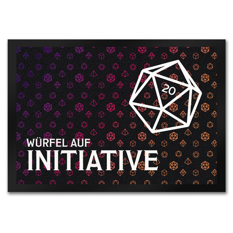 Tabletop Fußmatte mit Würfelmuster und Spruch: Würfel auf Initiative
