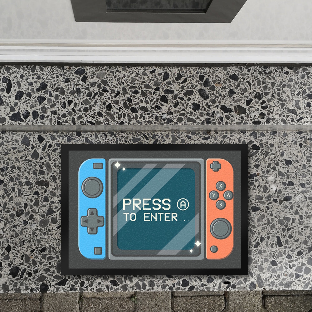 • 1x Press A to enter Fußmatte mit coolem Gamer Konsolen Motiv in der gewählten Größe