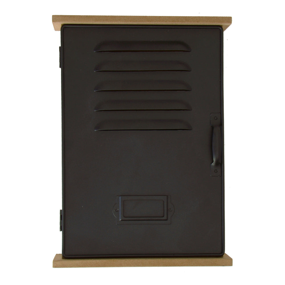 Der Retro Schlüsselkasten sieht aus wie ein Vintage Metallschrank in schwarz-matt. Material: Metall,Holz