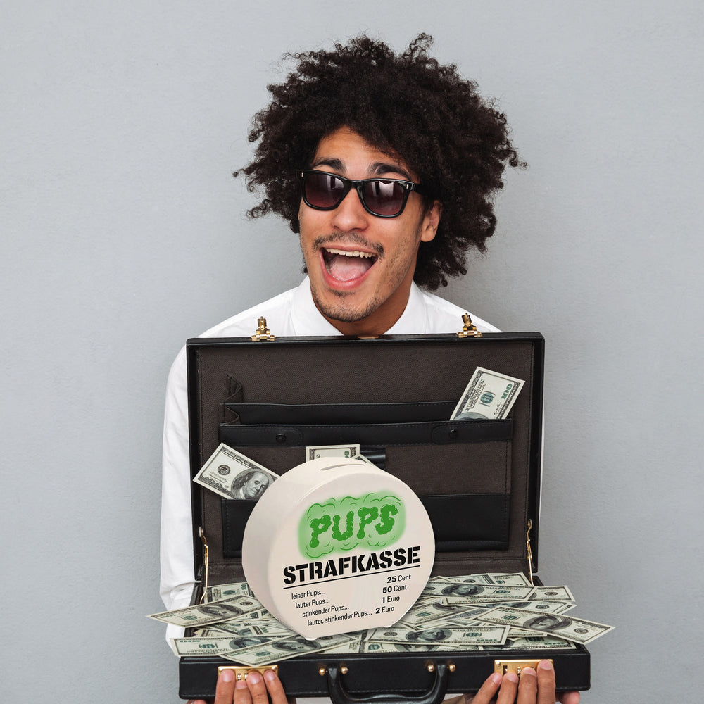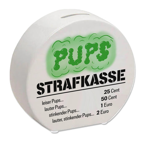 - Wenn bei euch zu Hause mal öfter ein lautes oder leises Tröten aus der Leistengegend zu hören ist, dann braucht ihr vielleicht eine Pups-Strafkasse. Damit kann man zukünftige Töne verhindern oder ein bisschen Geld für den nächsten Familienurlaub sparen!