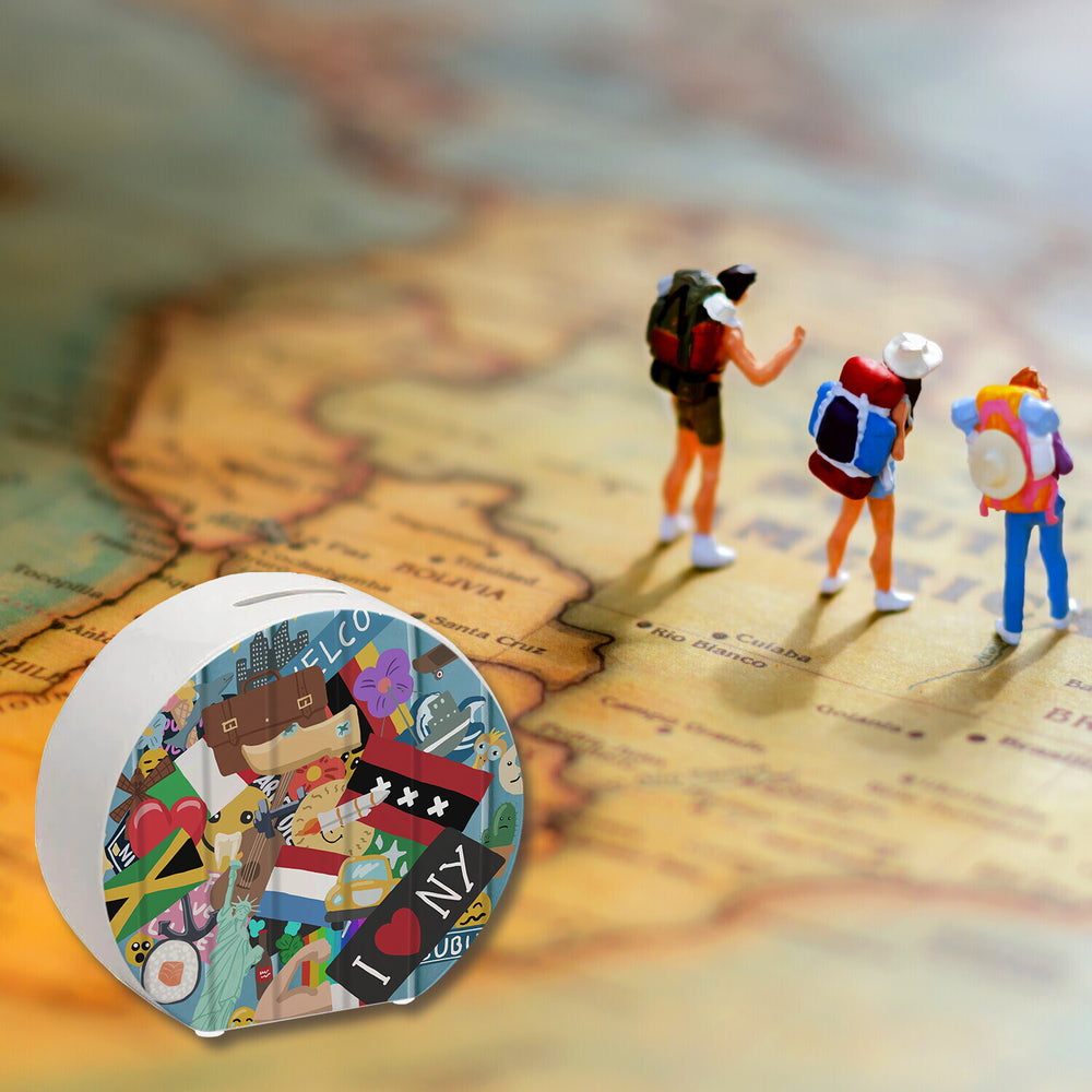 • Jeder mag es neue Reisen anzutreten, neue Städte und Kulturen zu entdecken. Mit der Sticker Spardose kann man für die schönste Zeit des Jahres ein wenig Geld sparen damit man im Urlaub über das nötige Kleingeld verfügt.