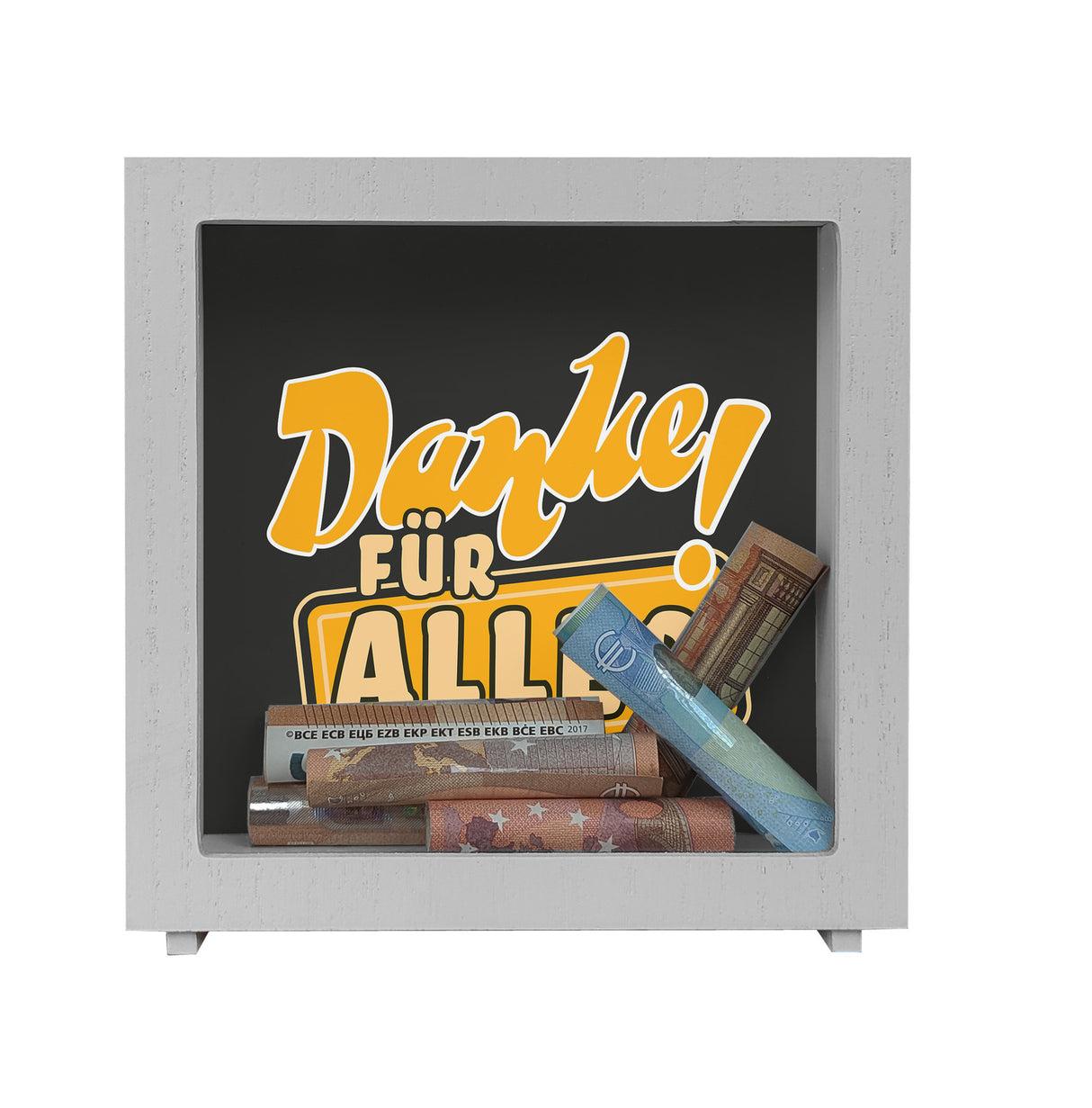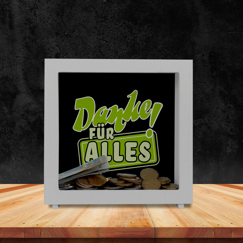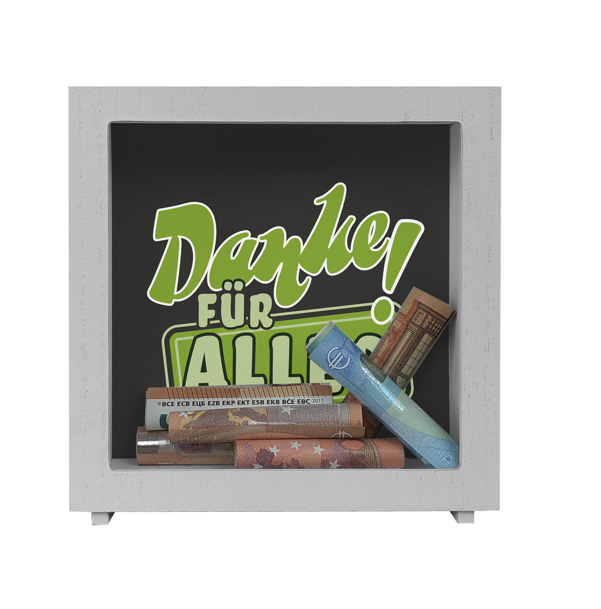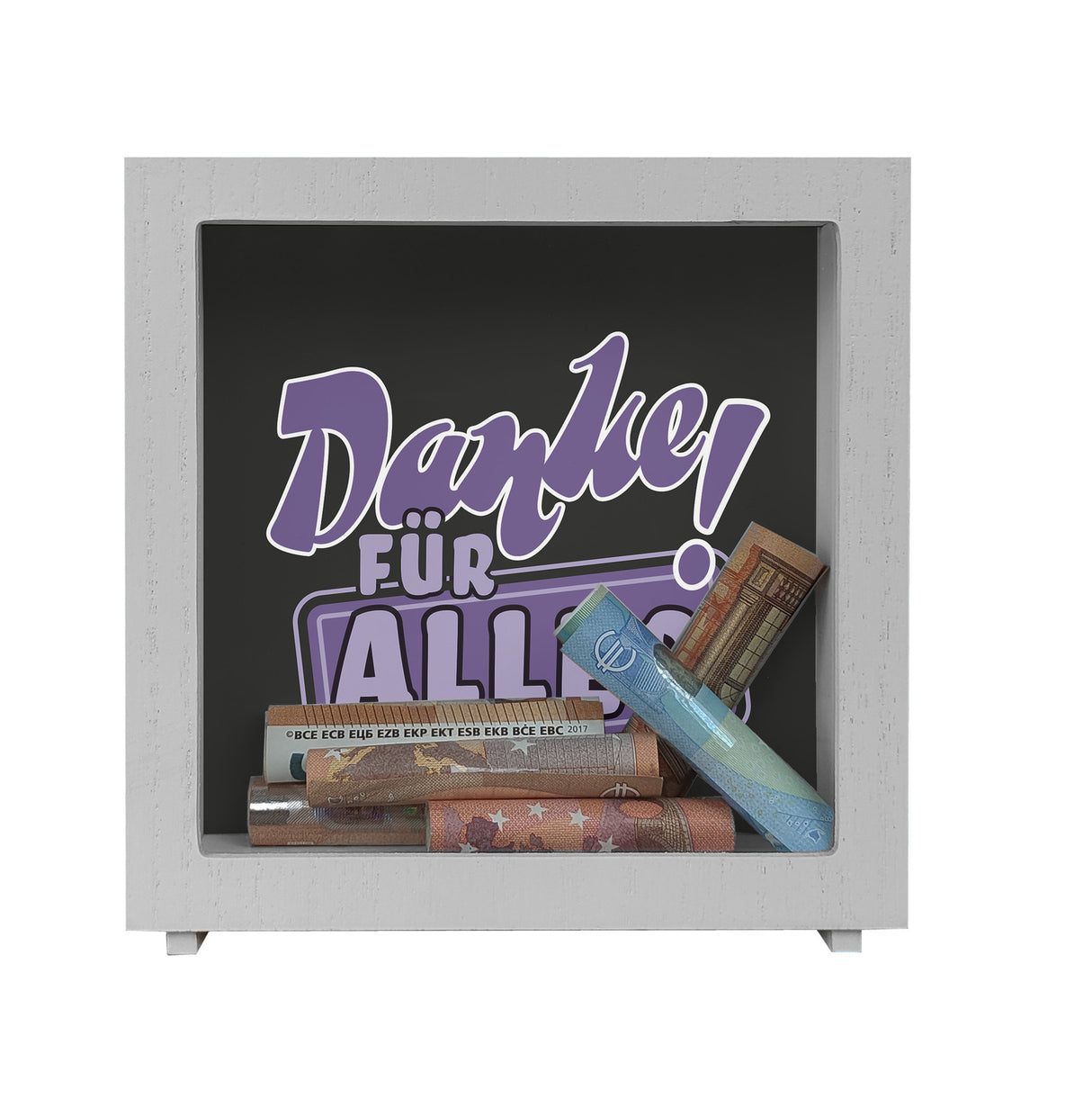 Spardose zum Thema Dankbarkeit - Danke für Alles!