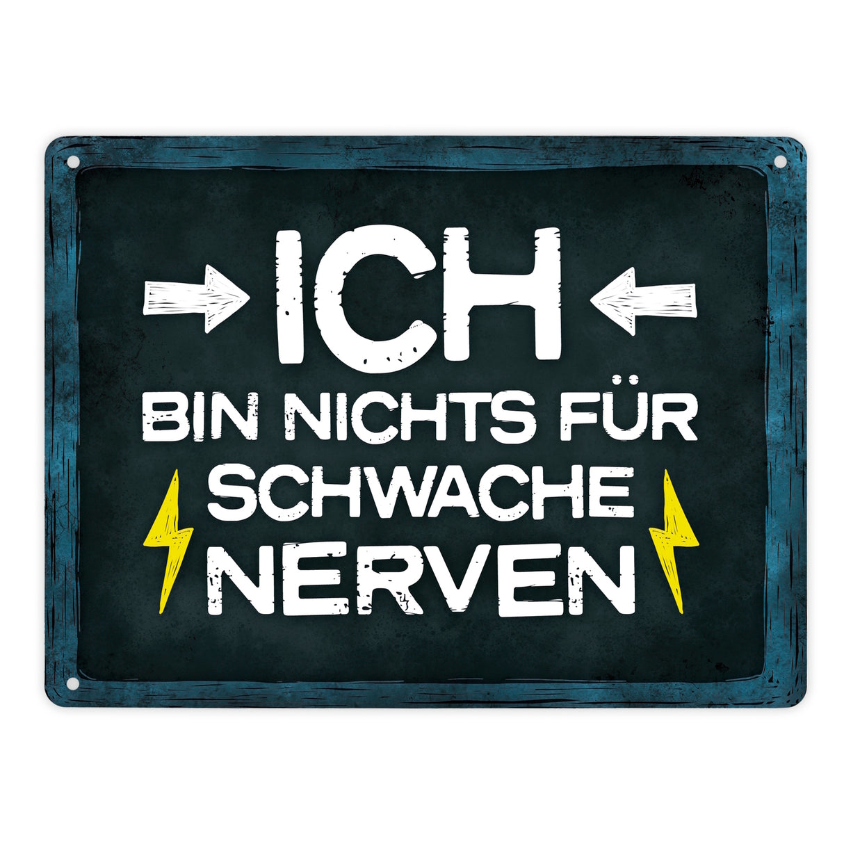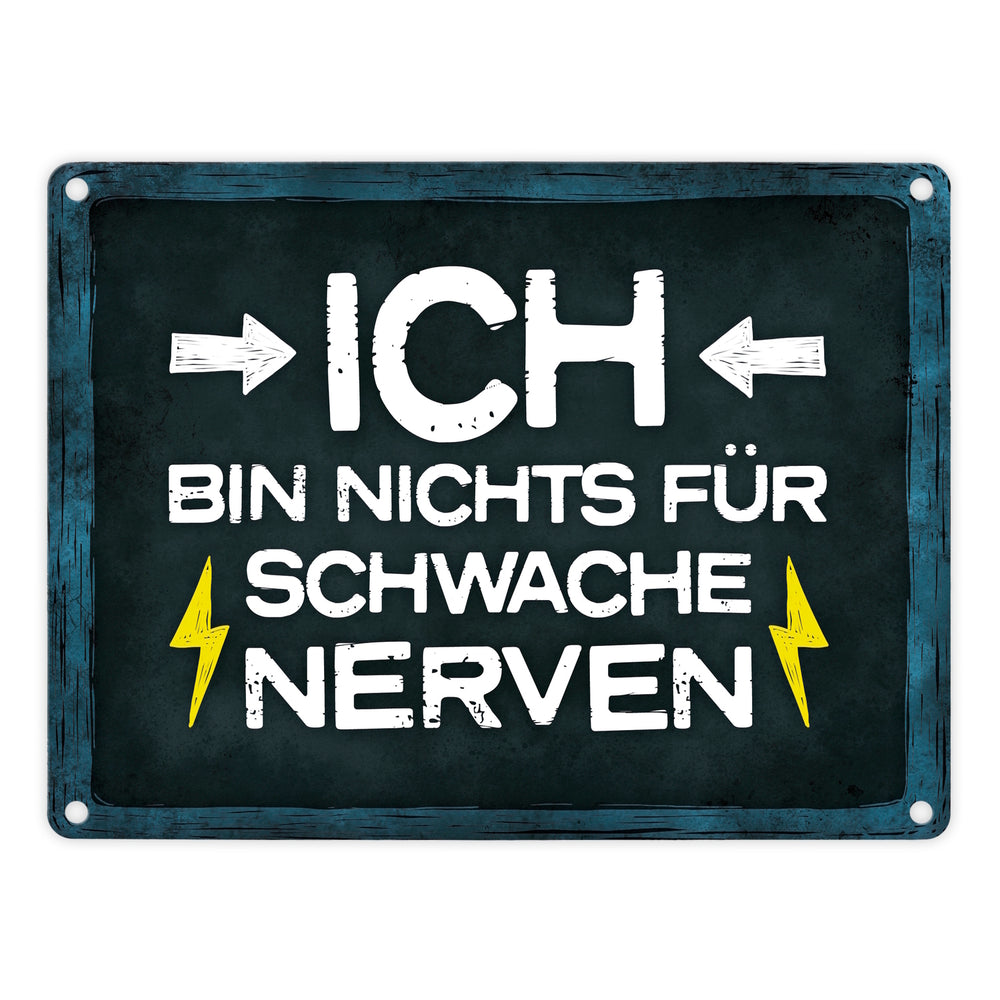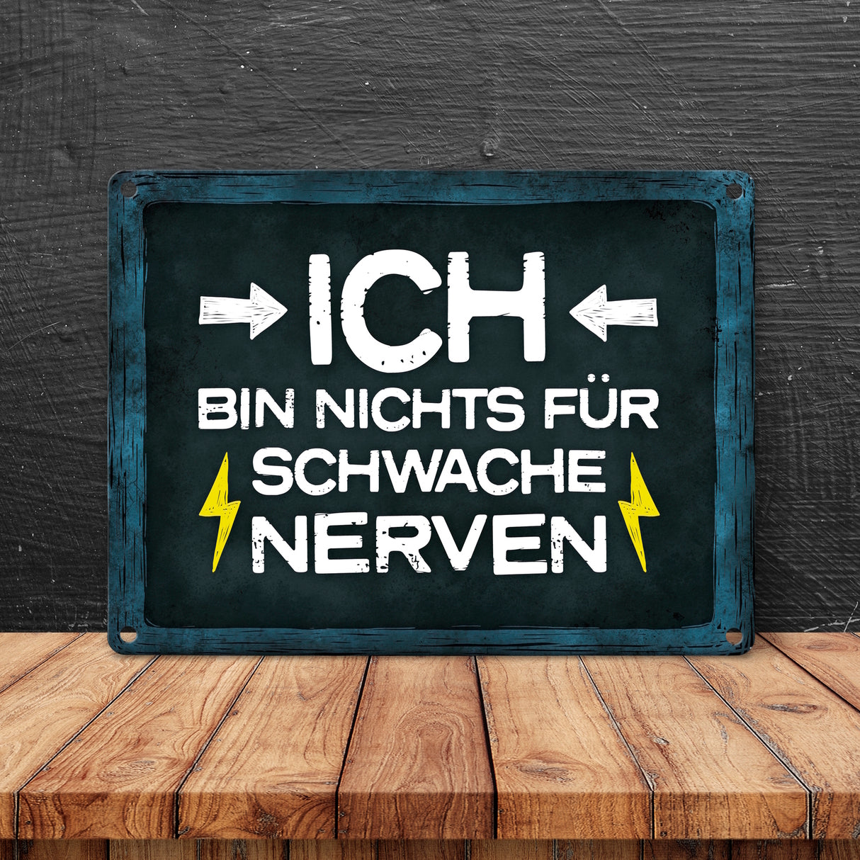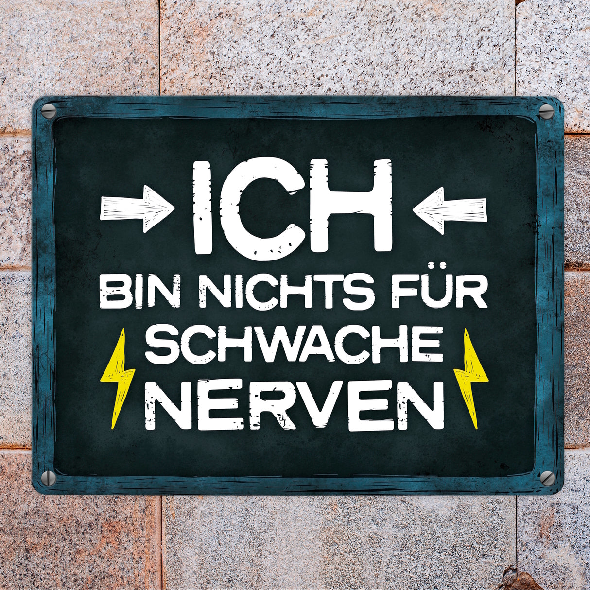 - 1x Stress Metallschild mit Wut Spruch: Ich bin nichts für schwache Nerven in der gewählten Größe