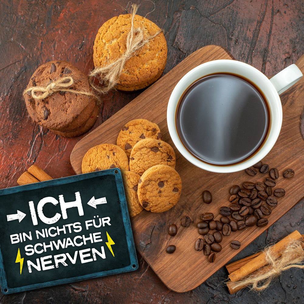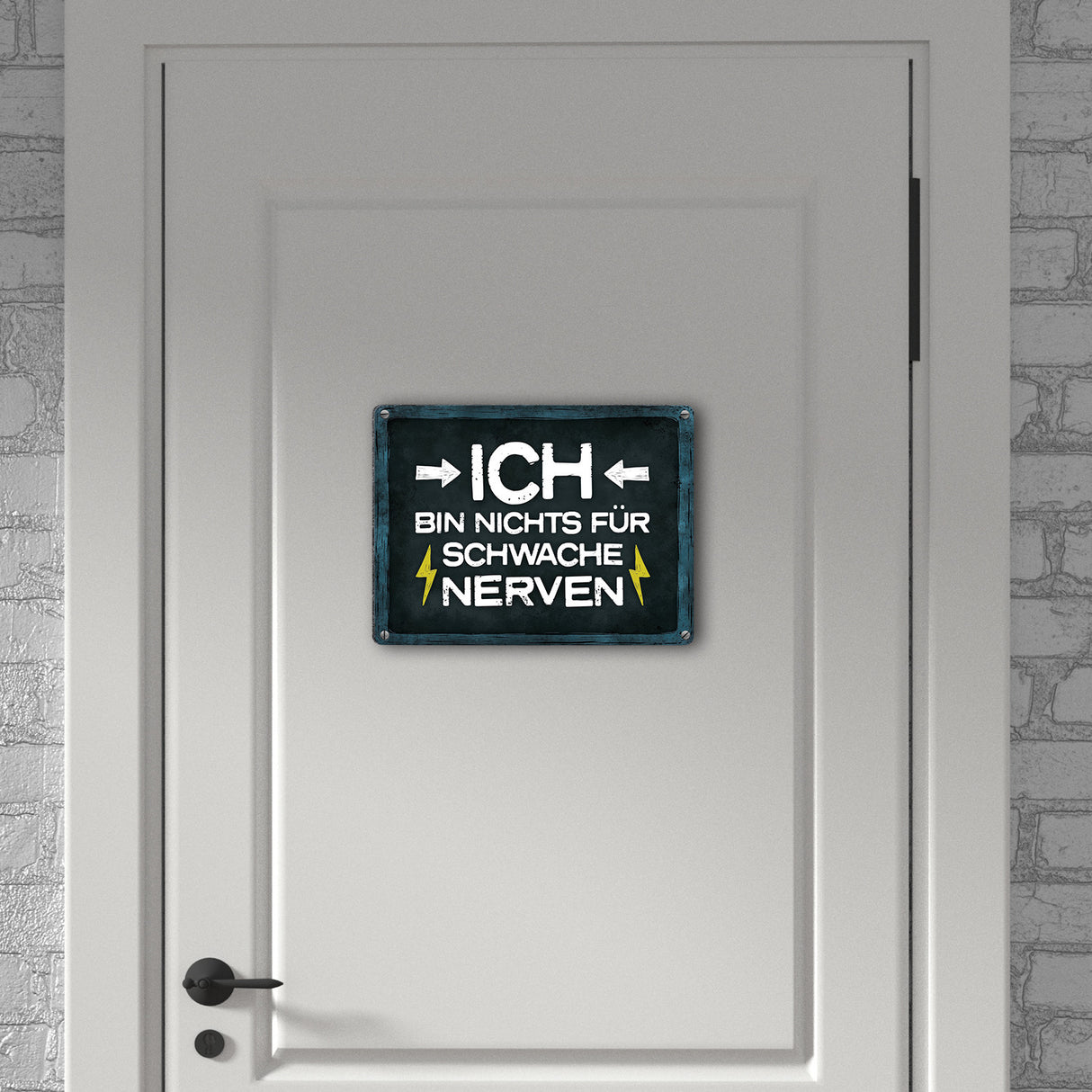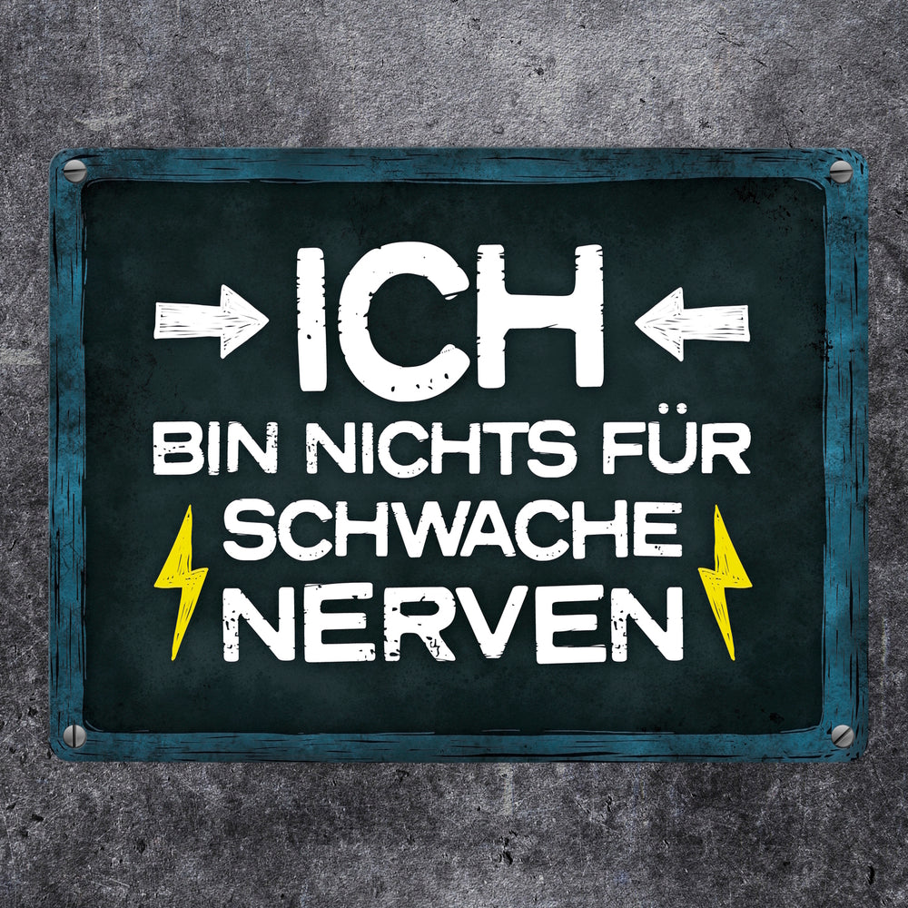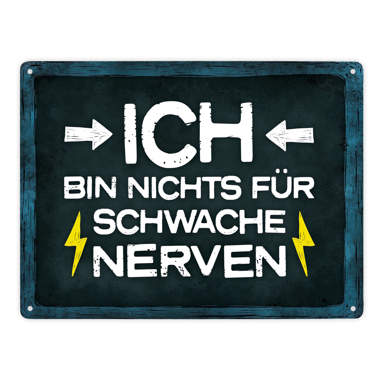 - 1x Stress Metallschild mit Wut Spruch: Ich bin nichts für schwache Nerven in der gewählten Größe