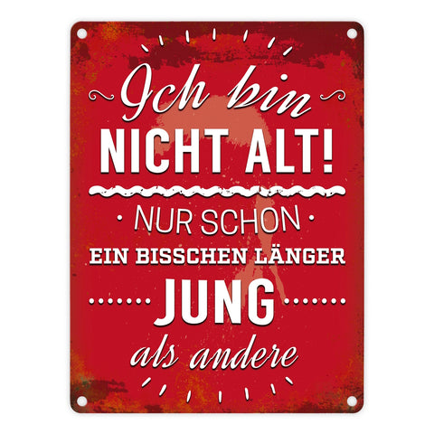 Metallschild mit Spruch: Ich bin nicht alt! Nur schon ein ...