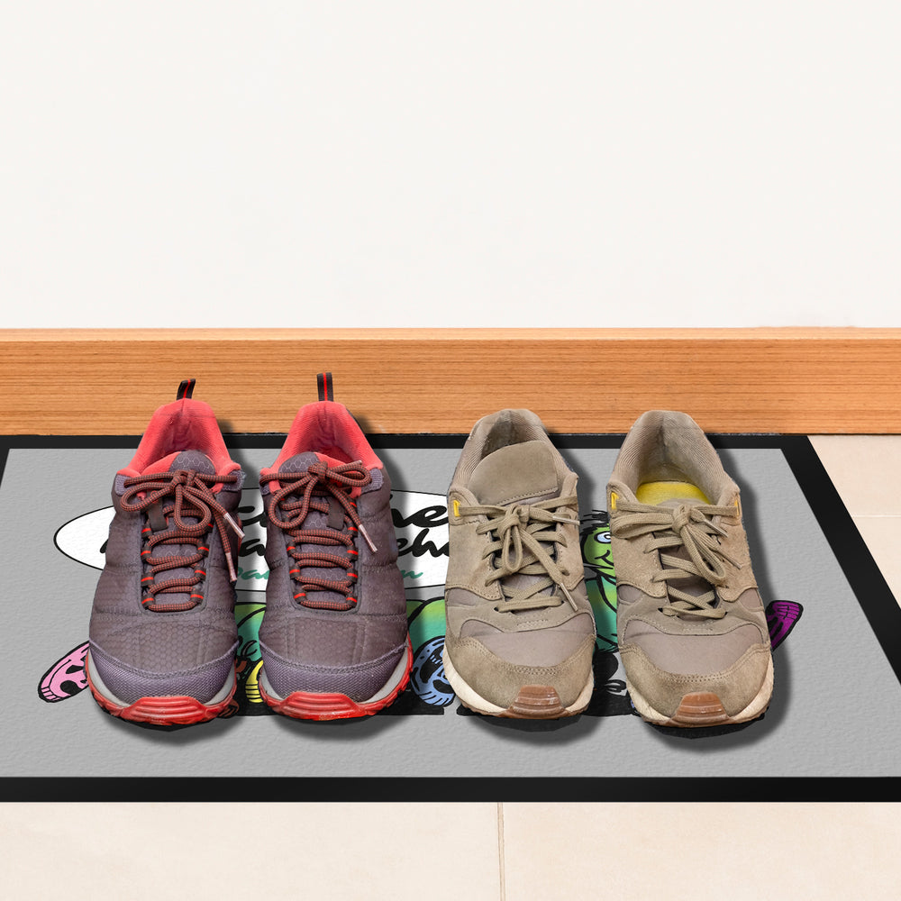- Entdecke die lustige Tausendfüßler Fußmatte mit dem frechen Spruch „Schuhe bitte ausziehen! Dankeschön“. Perfekt für Haustüre und Hauseingang, sorgt sie für ein sauberes Zuhause und ein Lächeln auf jedem Gesicht.