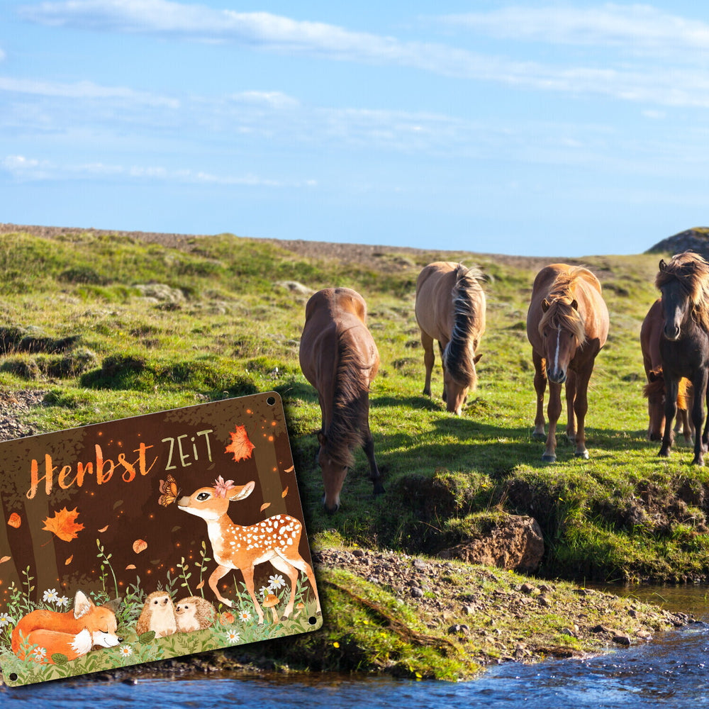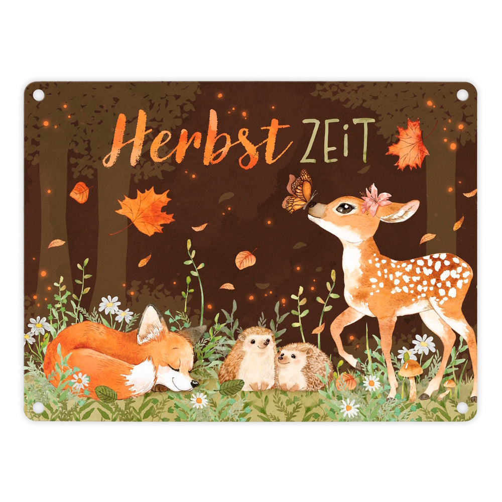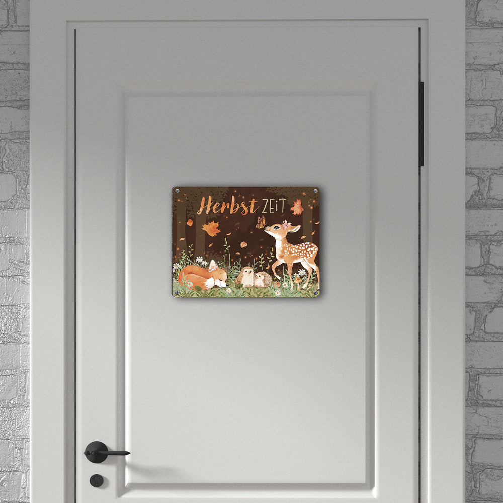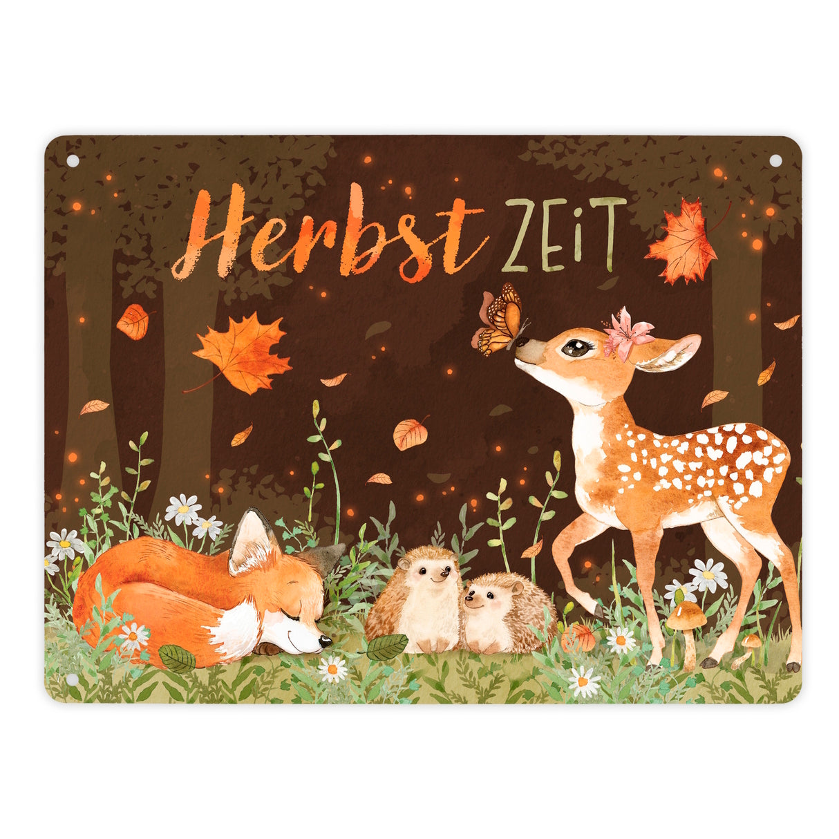 - 1x Tiere des Waldes Metallschild in 15x20 cm mit Spruch Herbstzeit in der gewählten Größe