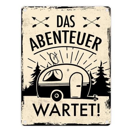 Das Abenteuer wartet Metallschild mit Campermotiv