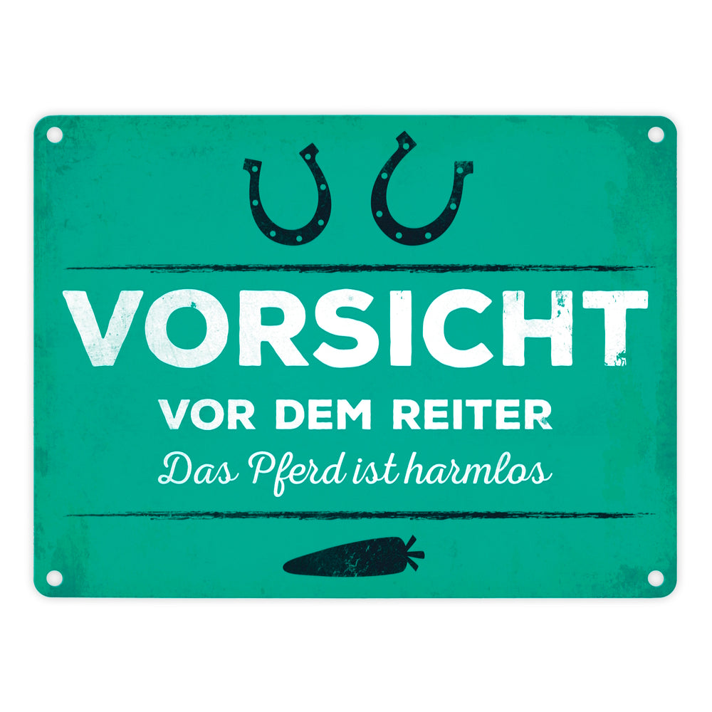 Vorsicht vor dem Reiter, das Pferd ist harmlos Metallschild