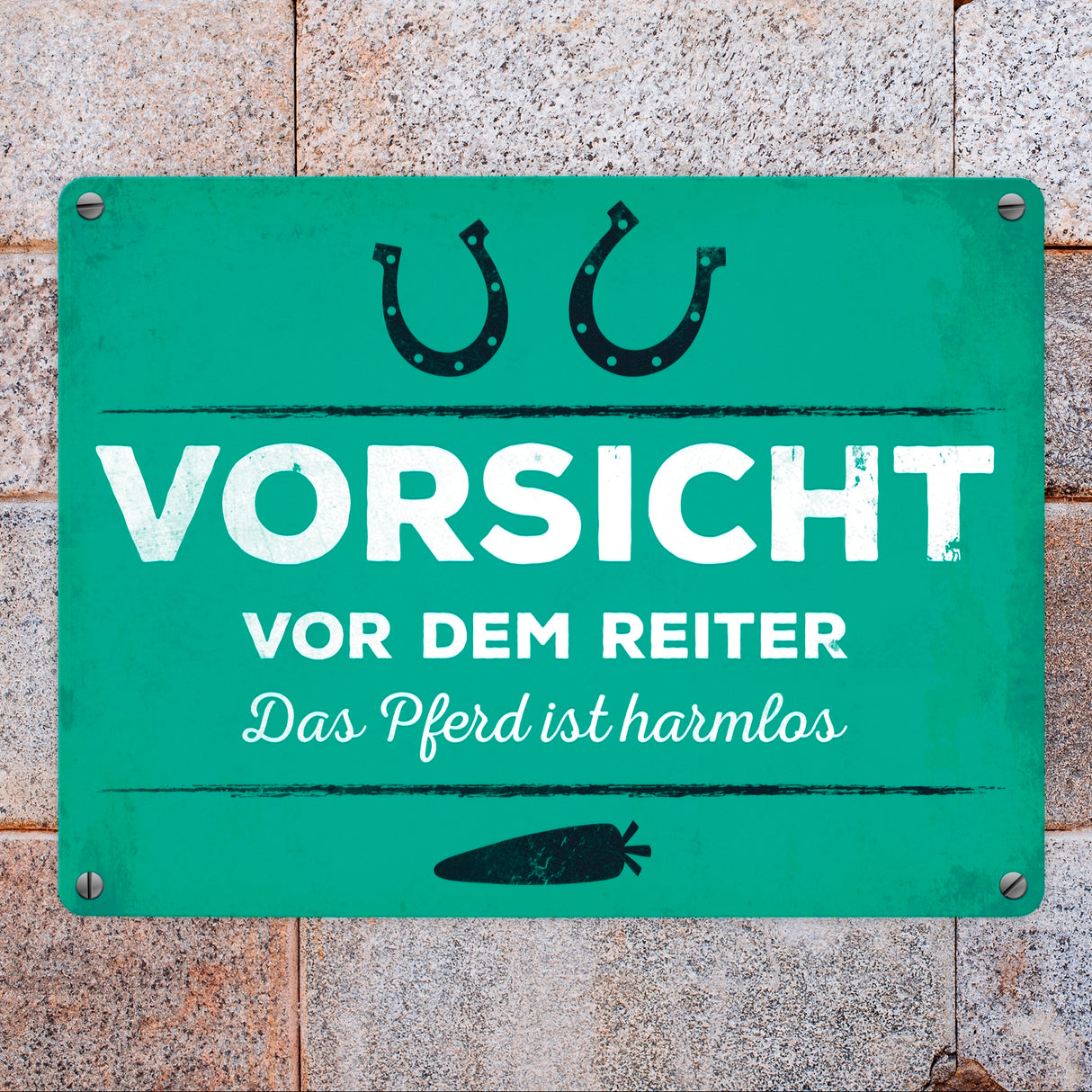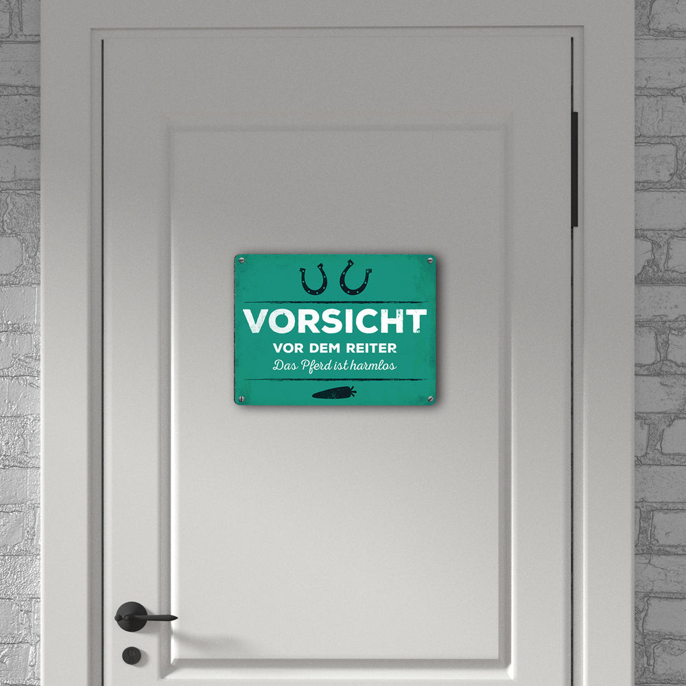 - 1x Vorsicht vor dem Reiter, das Pferd ist harmlos Metallschild in der gewählten Größe