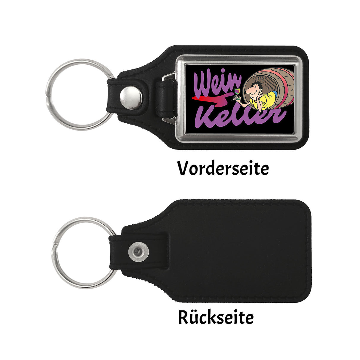 - 1x Weinkeller Schlüsselanhänger mit Weinfass Motiv in der gewählten Ausführung