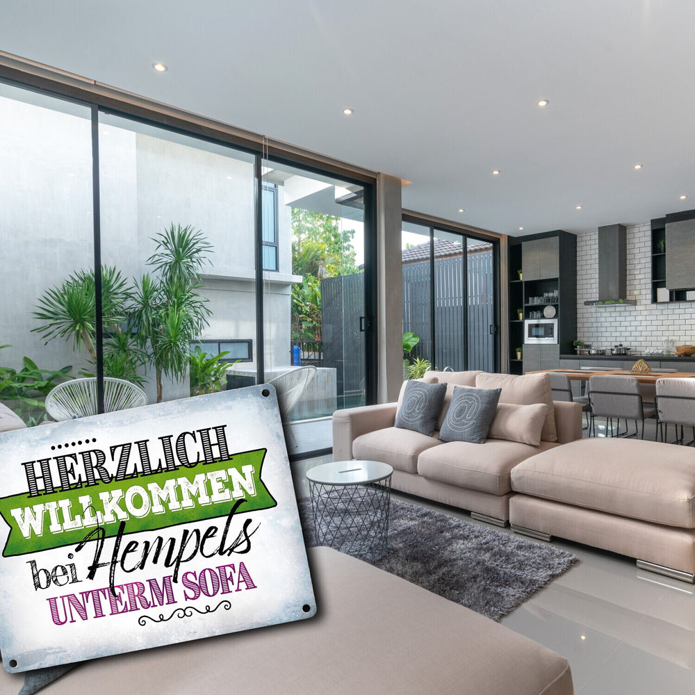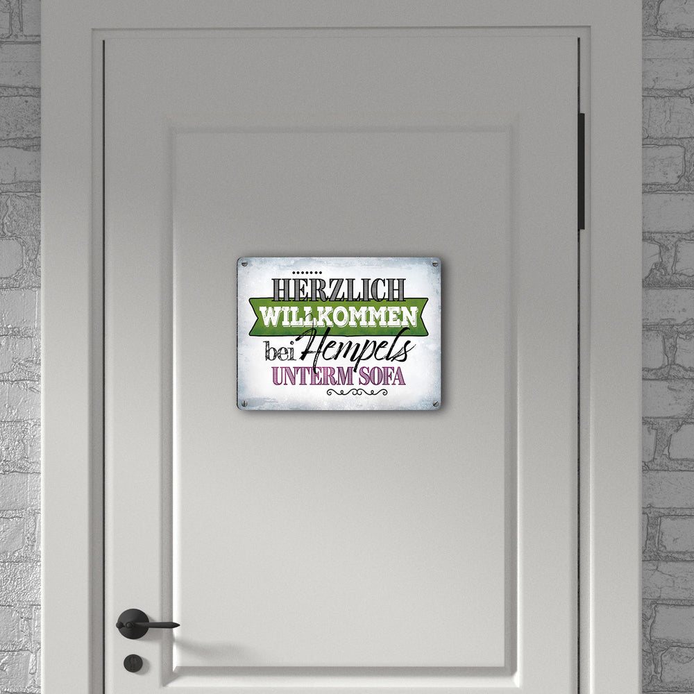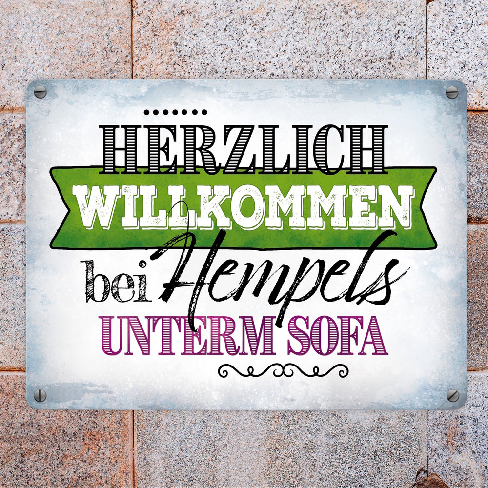 - 1x Willkommen bei Hempels unterm Sofa Metallschild in der gewählten Größe