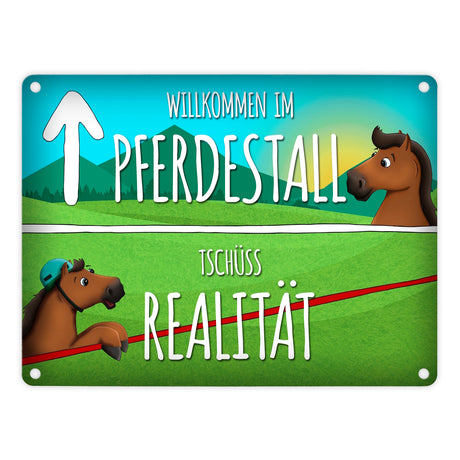 Metallschild mit Pferde Motiv und Spruch: Willkommen im Pferdestall