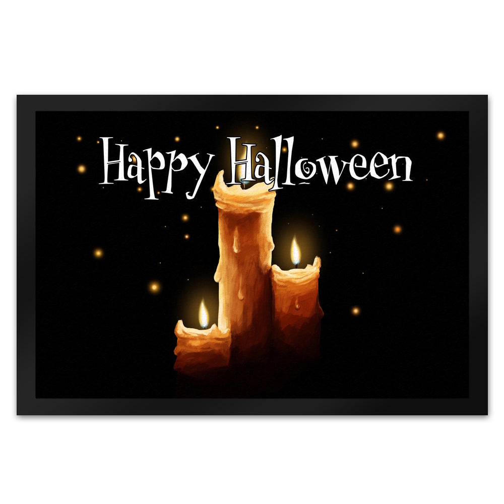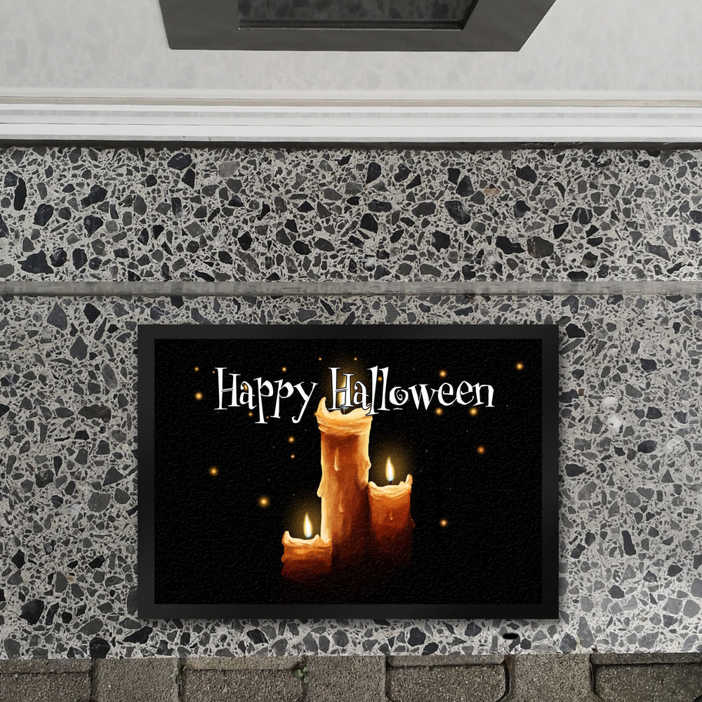 Fußmatte in 35x50 cm mit Kerze Motiv und Happy Halloween Schriftzug