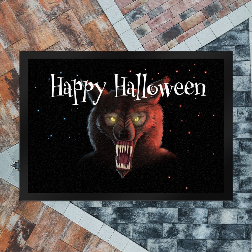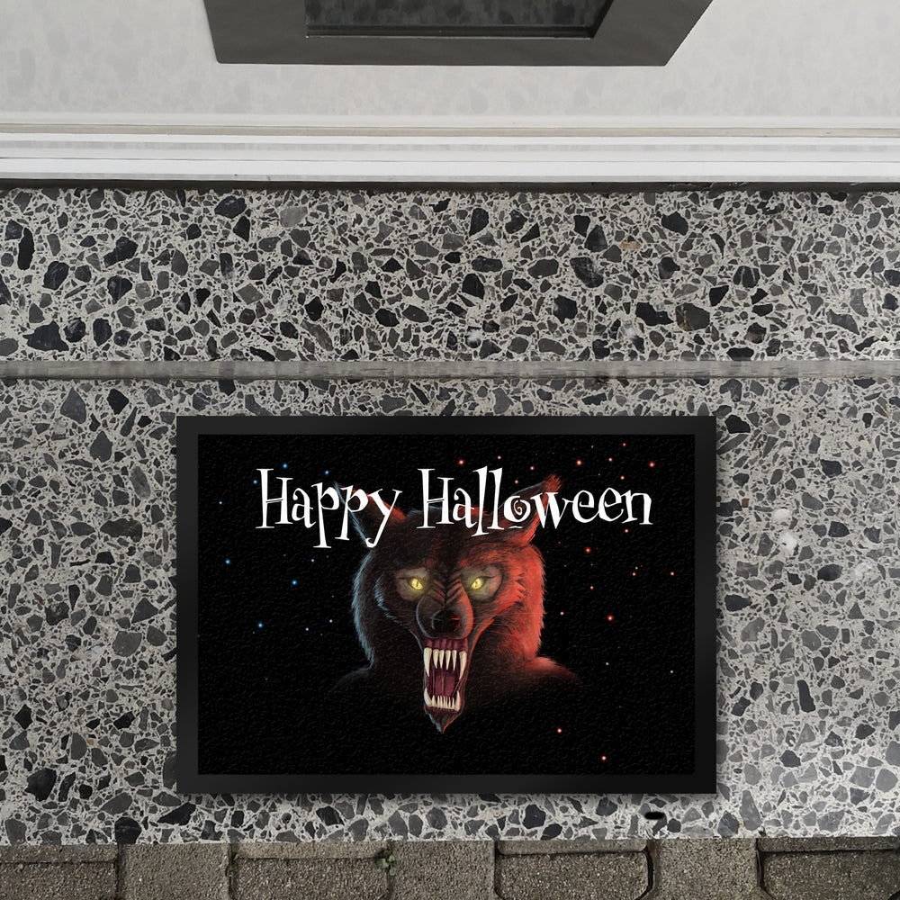 Fußmatte mit Werwolf Motiv und Happy Halloween Schriftzug
