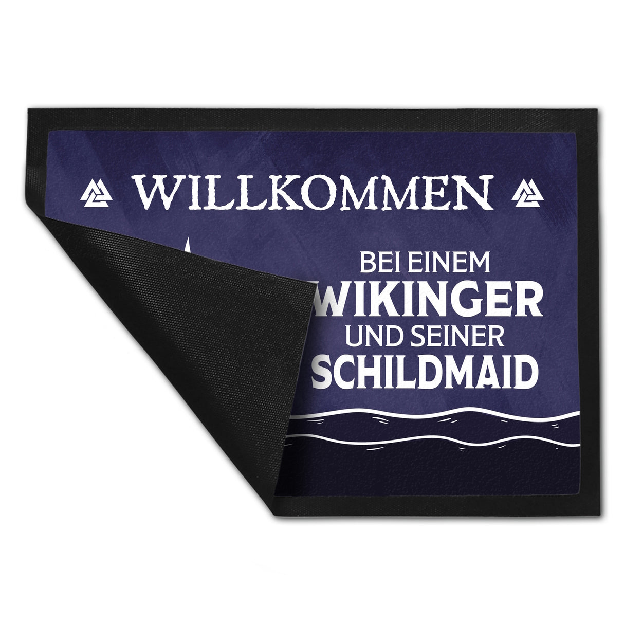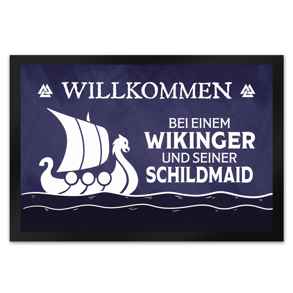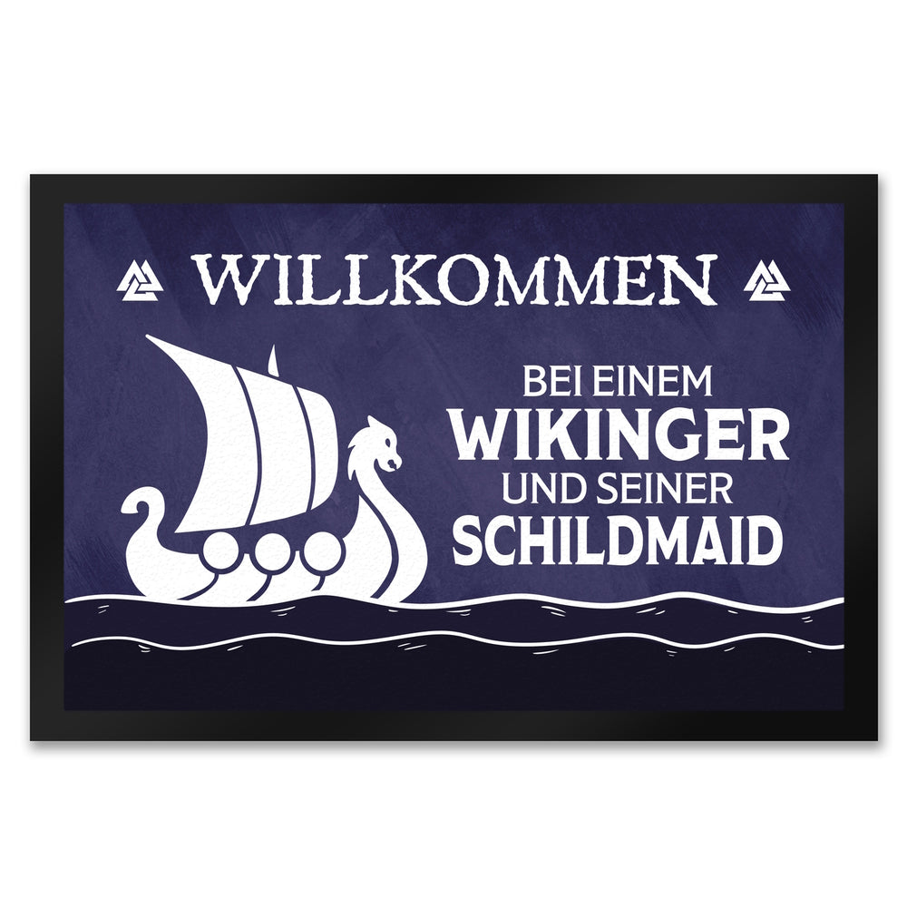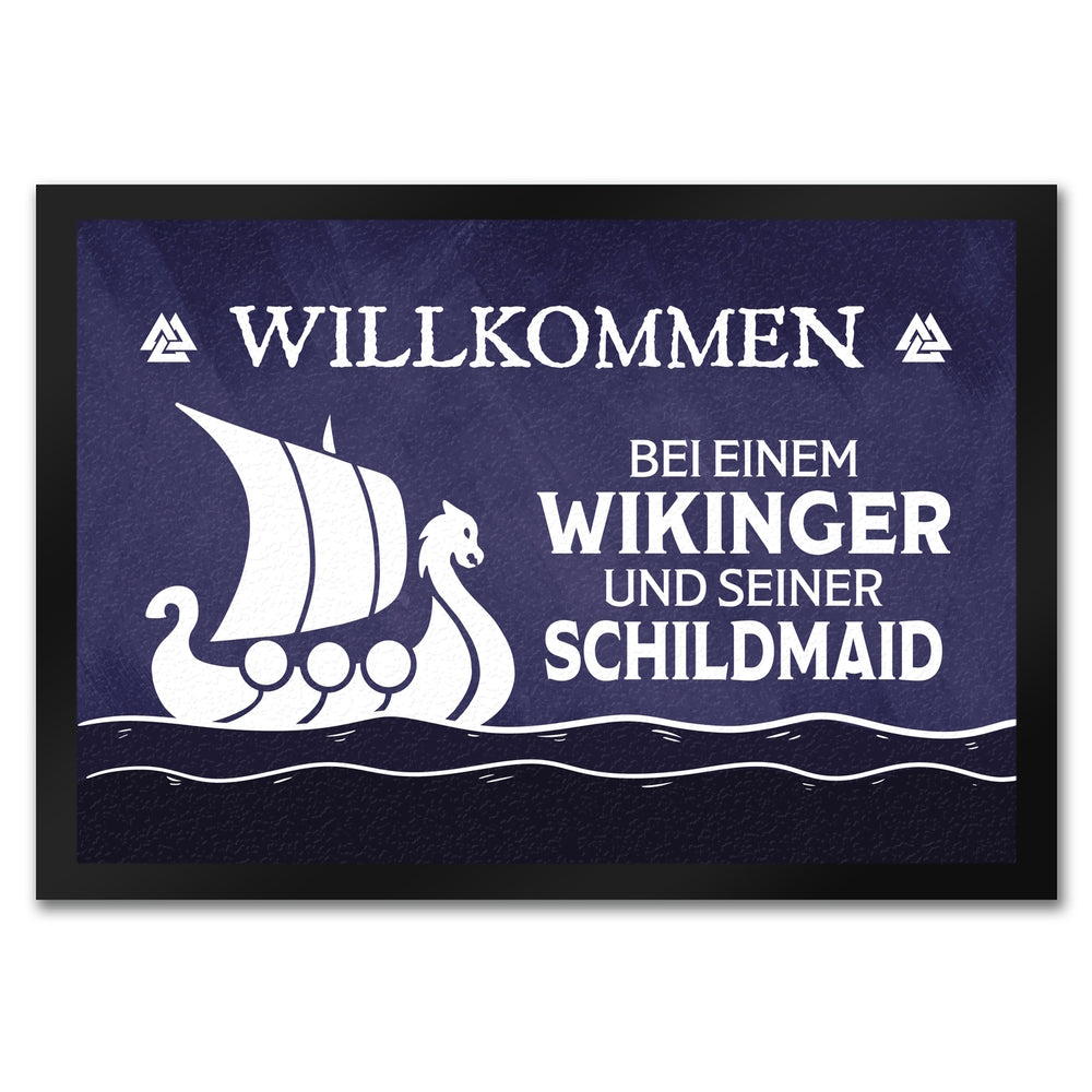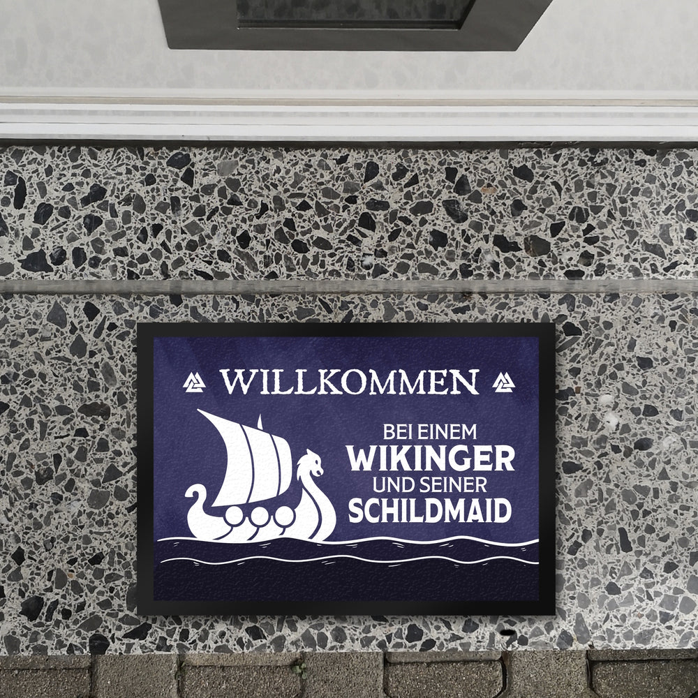 • 1x Willkommen bei einem Wikinger und seiner Schildmaid Fußmatte mit Segelboot Motiv in der gewählten Größe