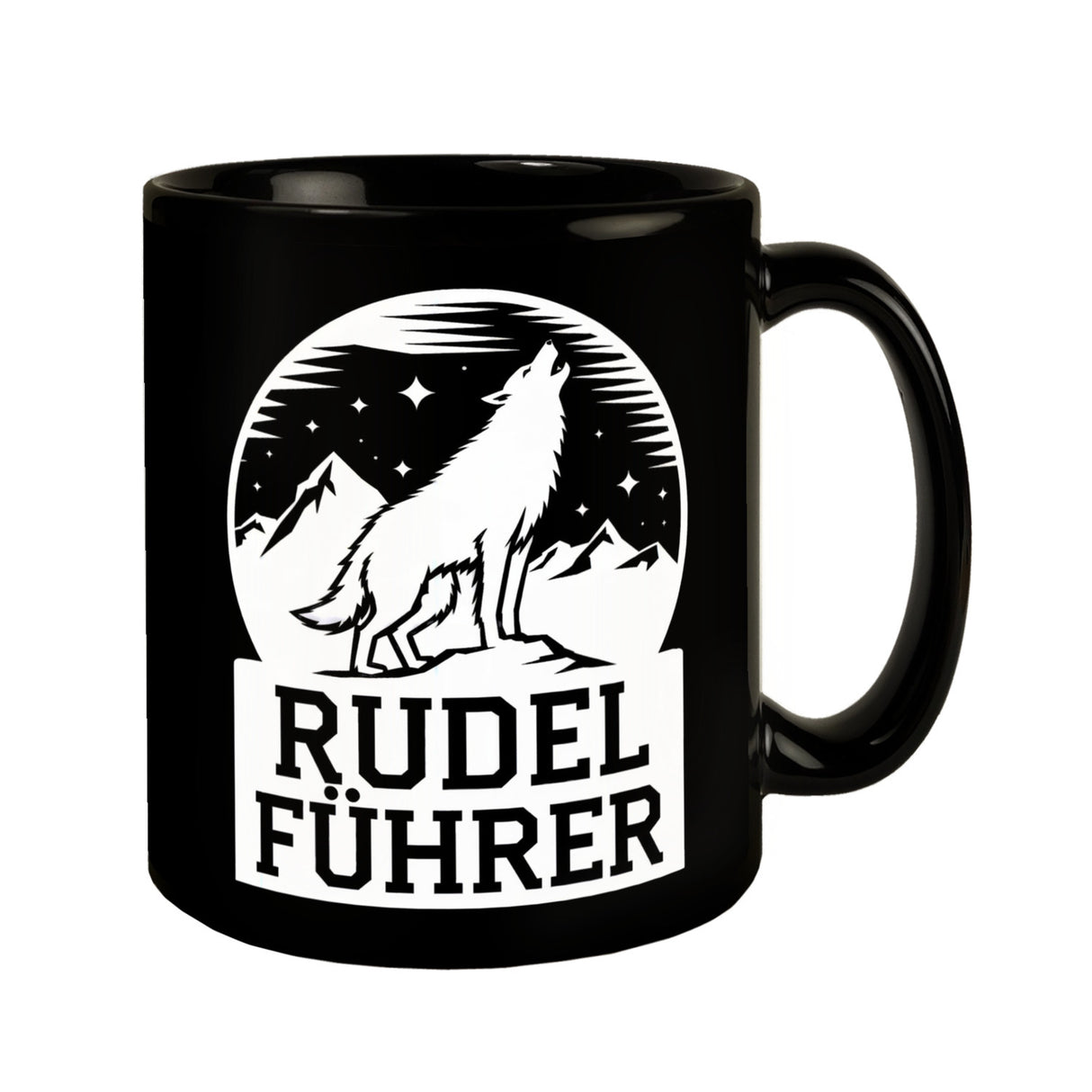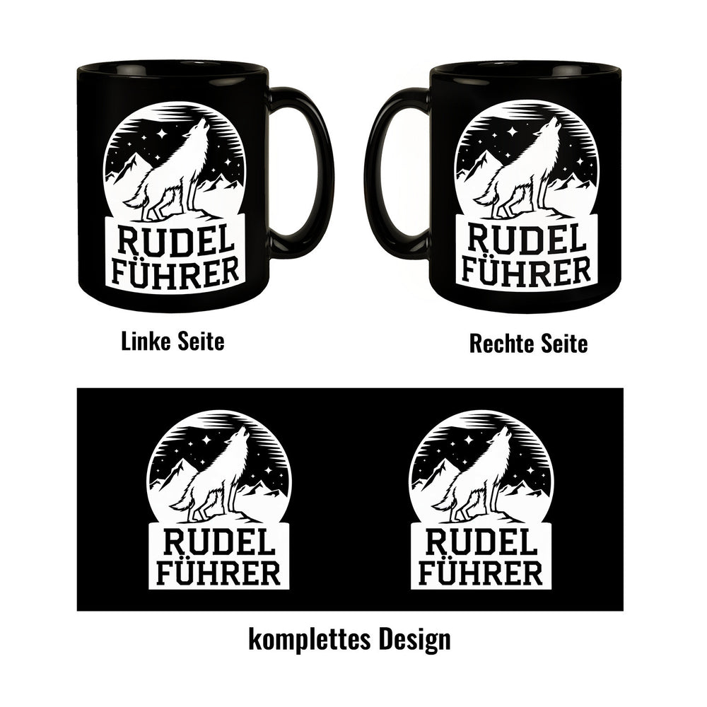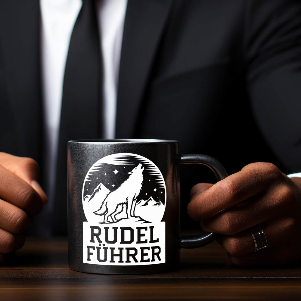 - Diese schwarz strahlende Tasse ist nicht nur ein Hingucker, sondern auch ein Magnet für Blicke! Mit der weißen Silhouette eines Wolfs und den majestätischen Bergen im Hintergrund, bist du als Naturfreund bestens gewappnet. Und der Schriftzug „RUDEL FÜHRER“? Ein Muss für alle Alphatiere!