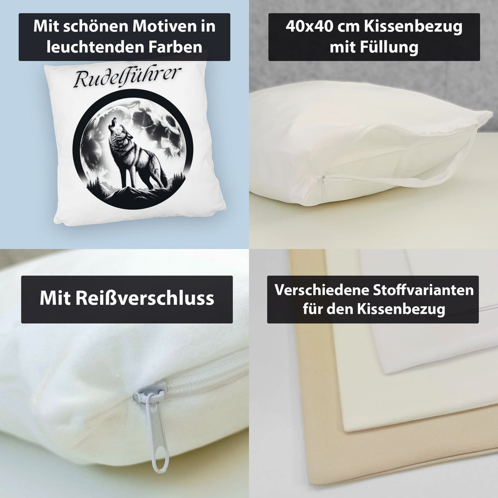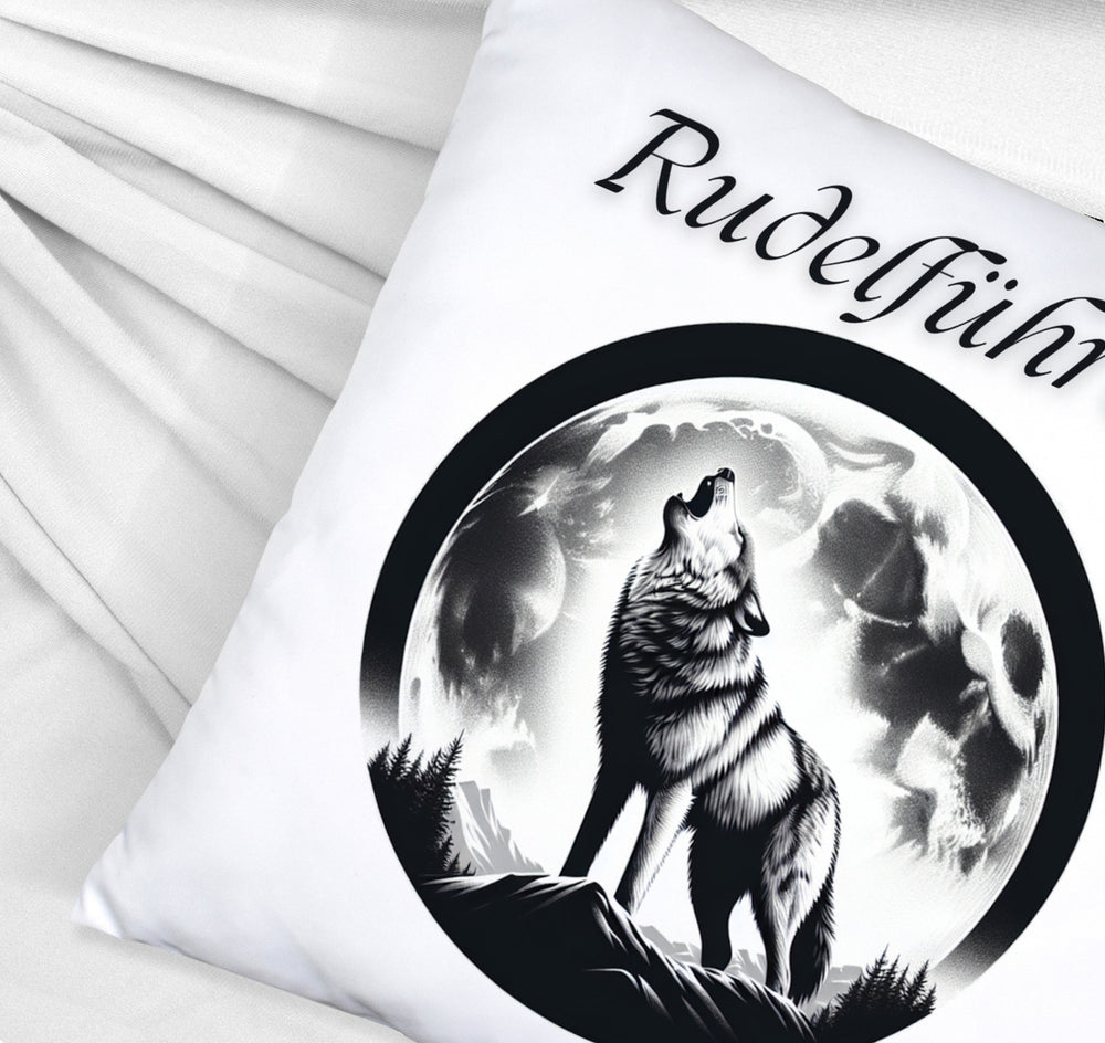 - 1x Wolf im Mondschein Rudelführer Kissen in der gewählten Ausführung
