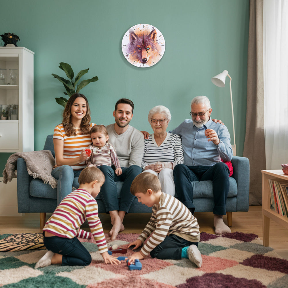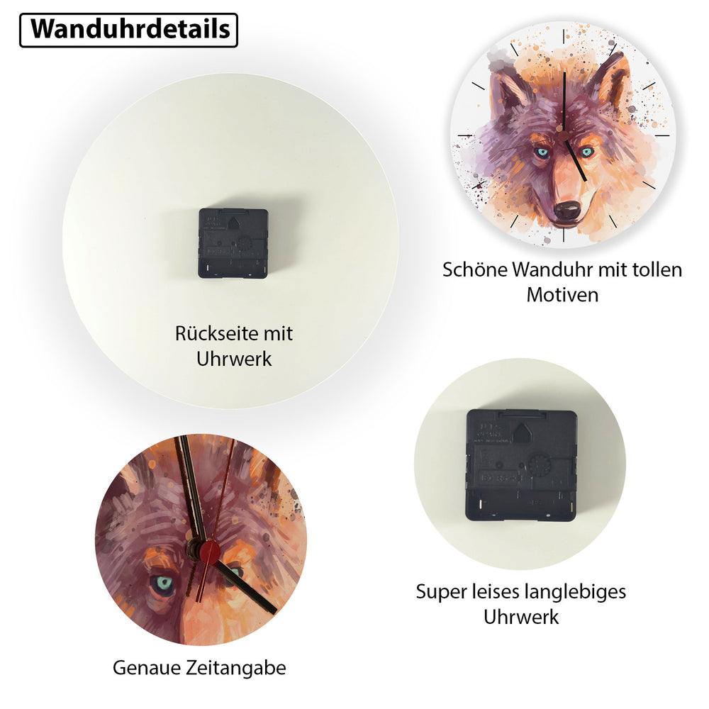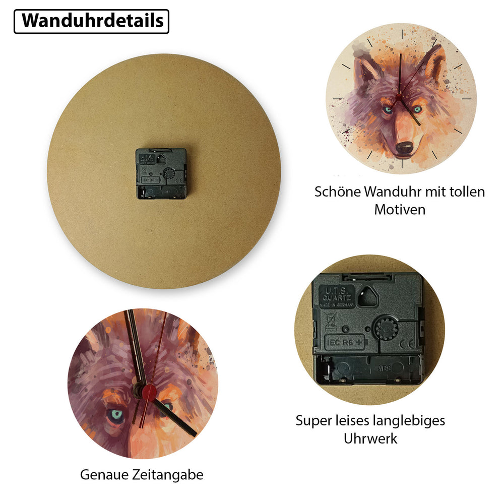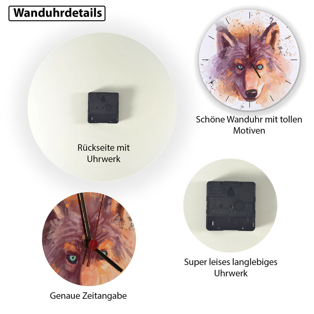 - 1x Wolf in Wasserfarbenoptik Wanduhr in der gewählten Variante