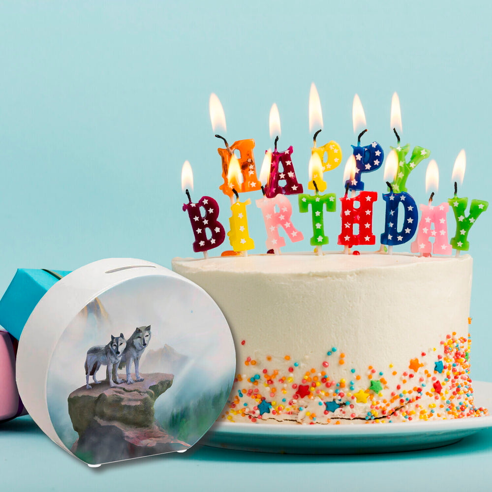 • Die coole Spardose mit Wolf Motiv ist das perfekte Geschenk für alle die Fantasy, Mittelalter und Naturmotive lieben! Es zeigt ein mystisches Wolfspaar auf einem Felsen vor einer bergigen und nebeligen Kulisse. Diese Sparbüchse ist deshalb ideal als originelle Geschenkidee zum Geburtstag für Wolf- und Naturliebhaber.