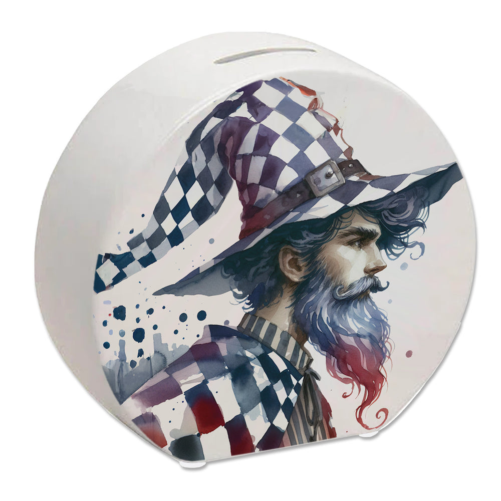 - Ohne Hokuspokus zur monetären Glückseligkeit! Die Zauberer Spardose mit gepunkteten Klamotten und Schachbrettmuster-Outfit verwahrt deine Groschen sicher. Ein Magier in voller Montur, komplett mit schicker Robe und dem unverzichtbaren Zauberstab, passt auf dein Geld auf als wäre es magisches Gold!