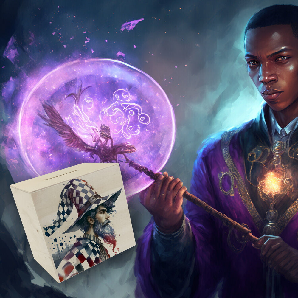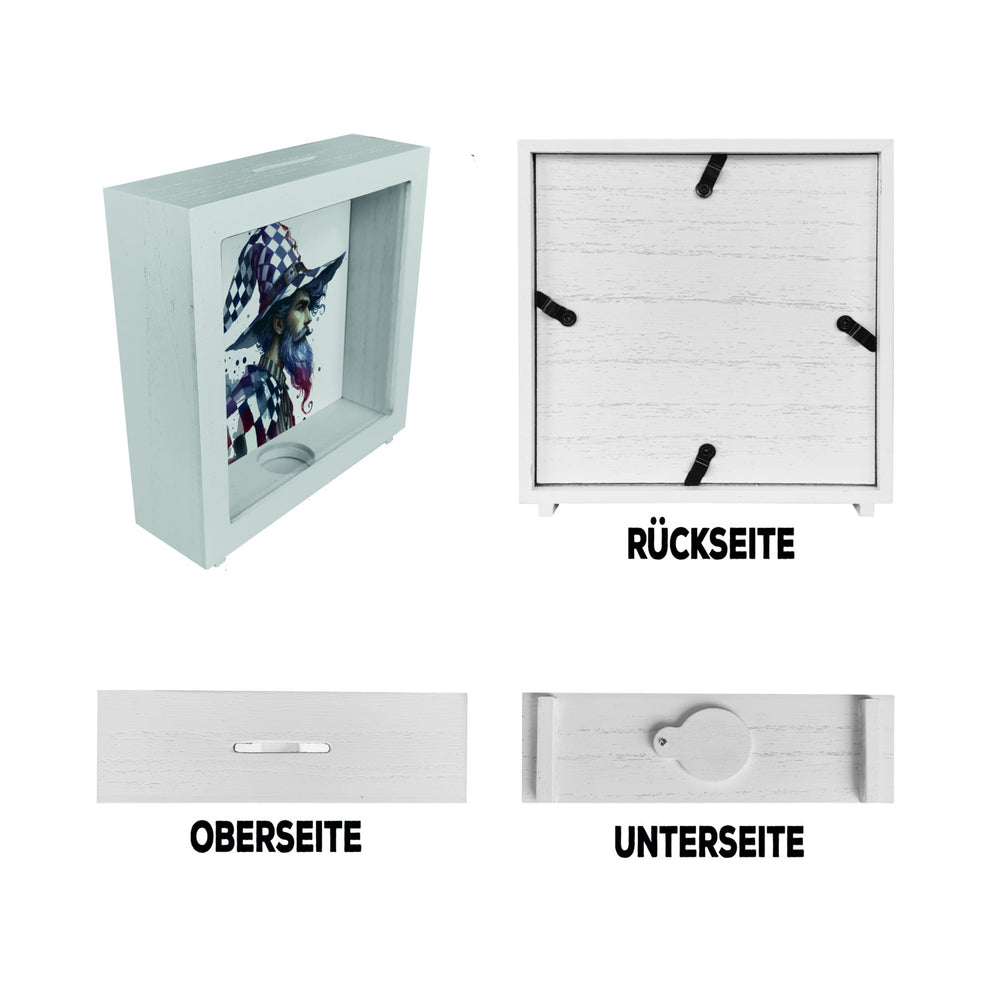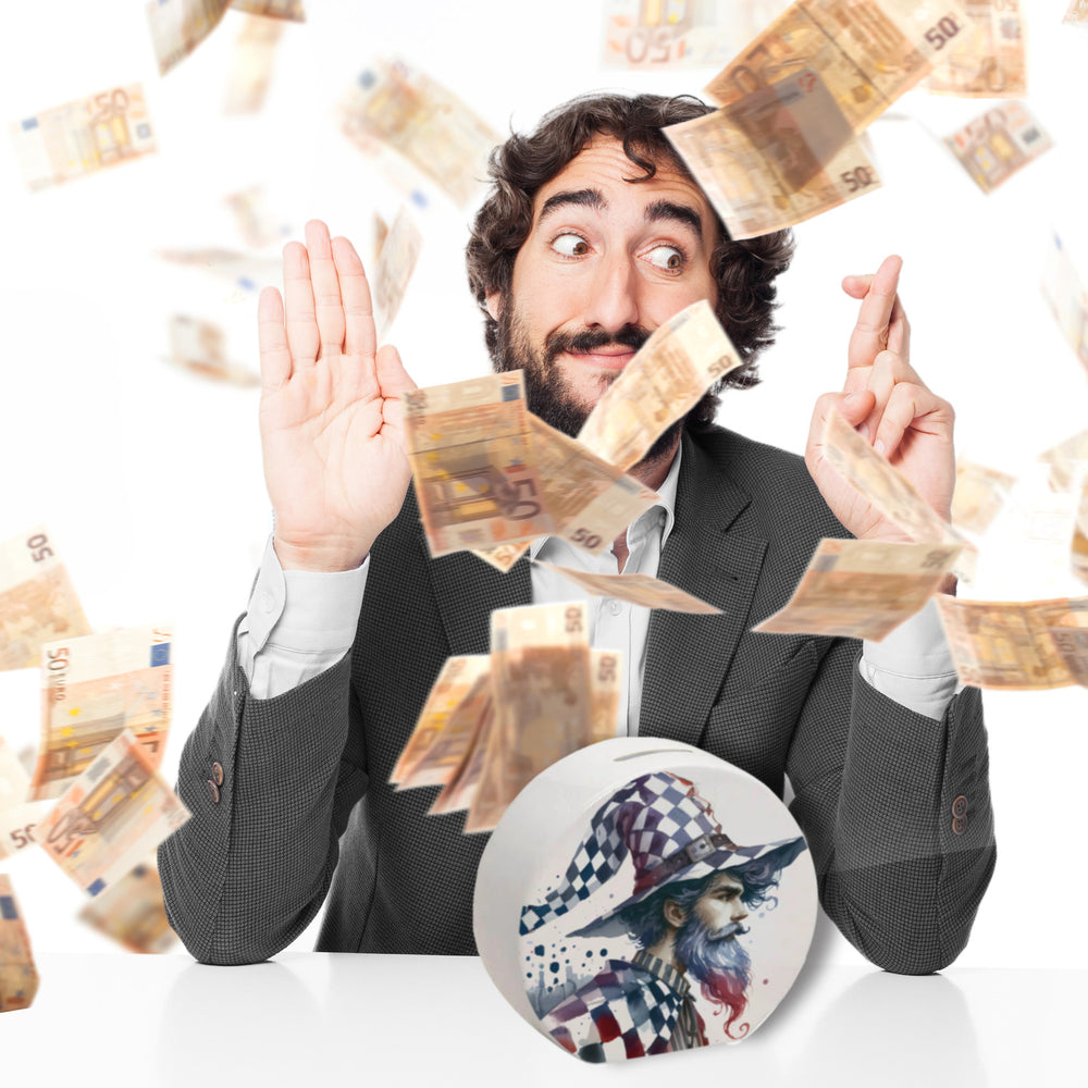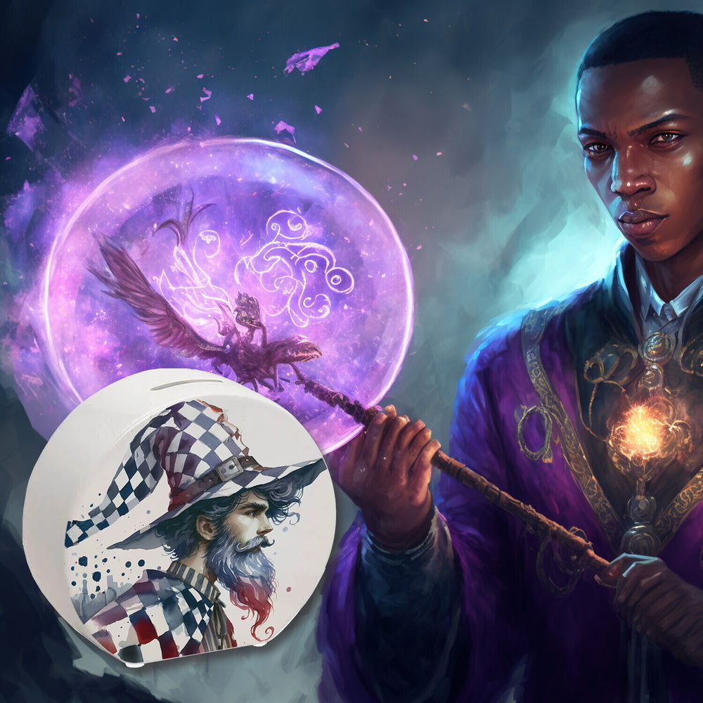 - 1x Zauberer Spardose in der gewählten Ausführung