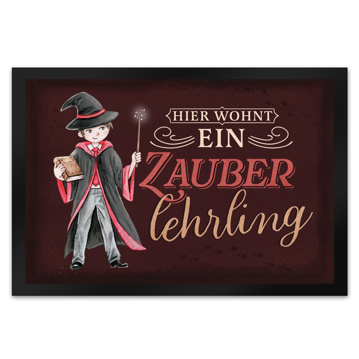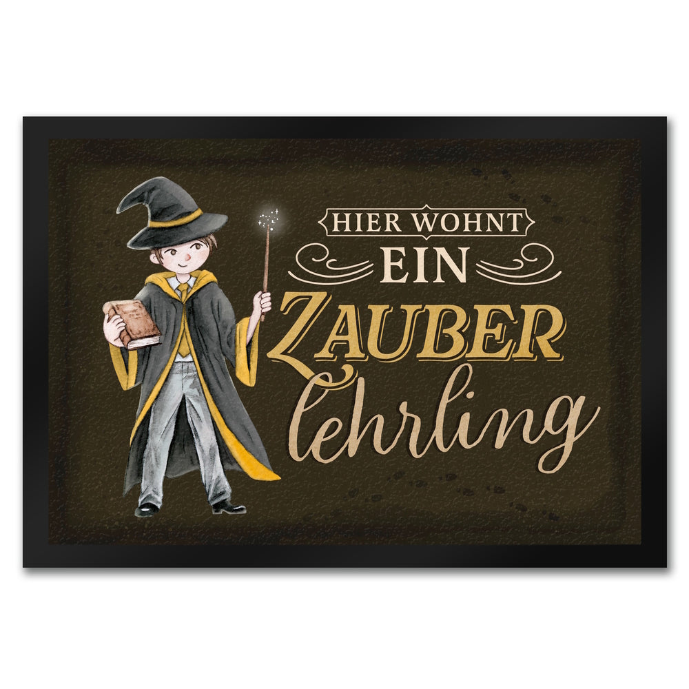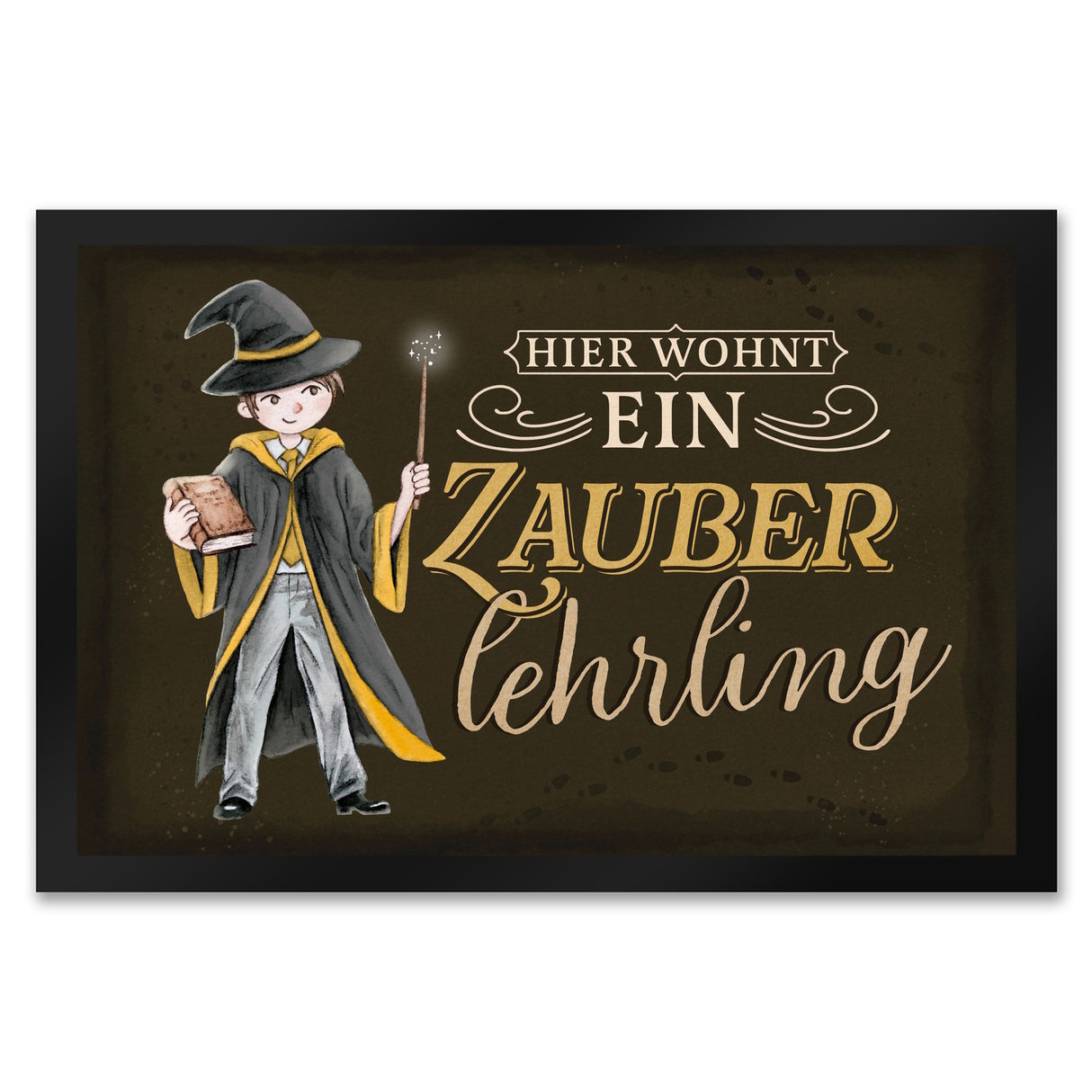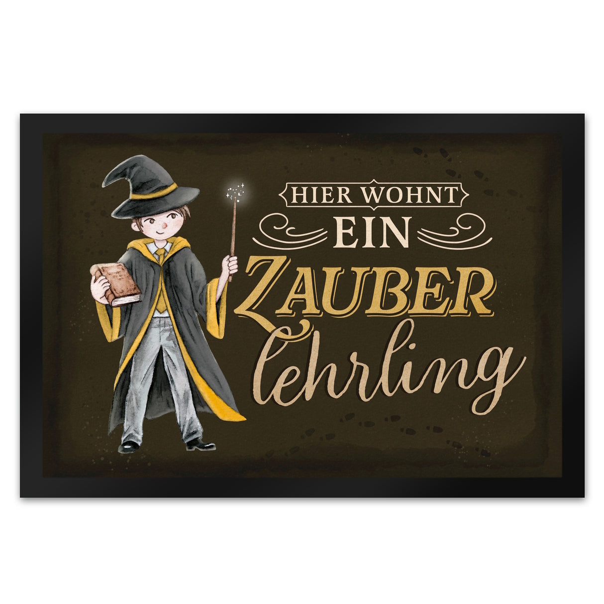 - 1x Zauberlehrling Fußmatte in 35x50 cm mit Zauberschüler mit dunklem Hintergrund in der gewählten Größe