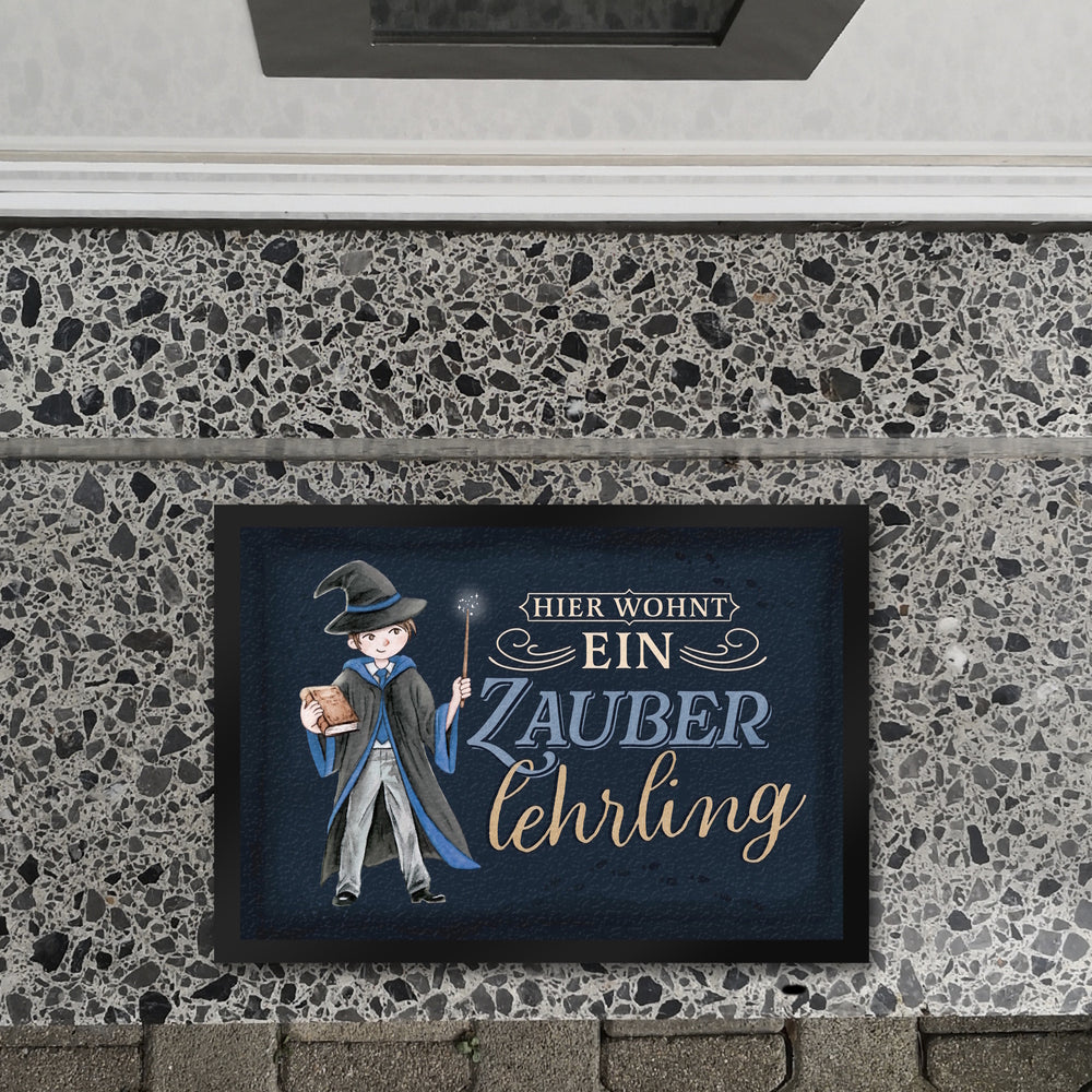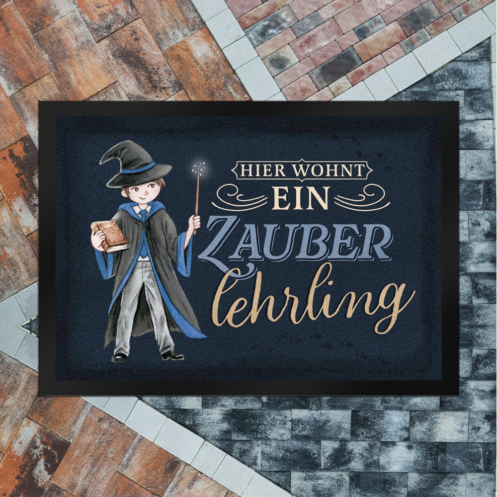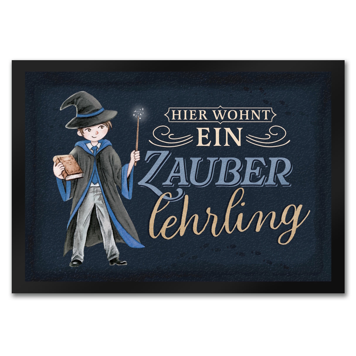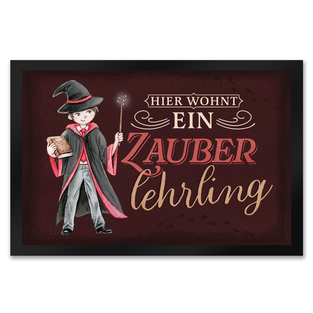 - 1x Zauberlehrling Fußmatte in 35x50 cm mit Zauberschüler mit dunklem Hintergrund in der gewählten Größe