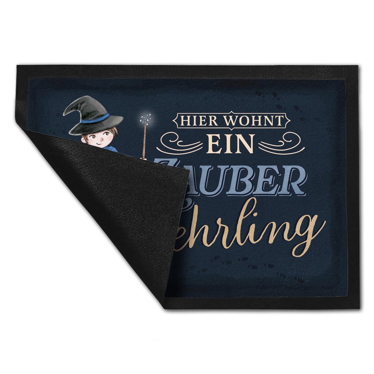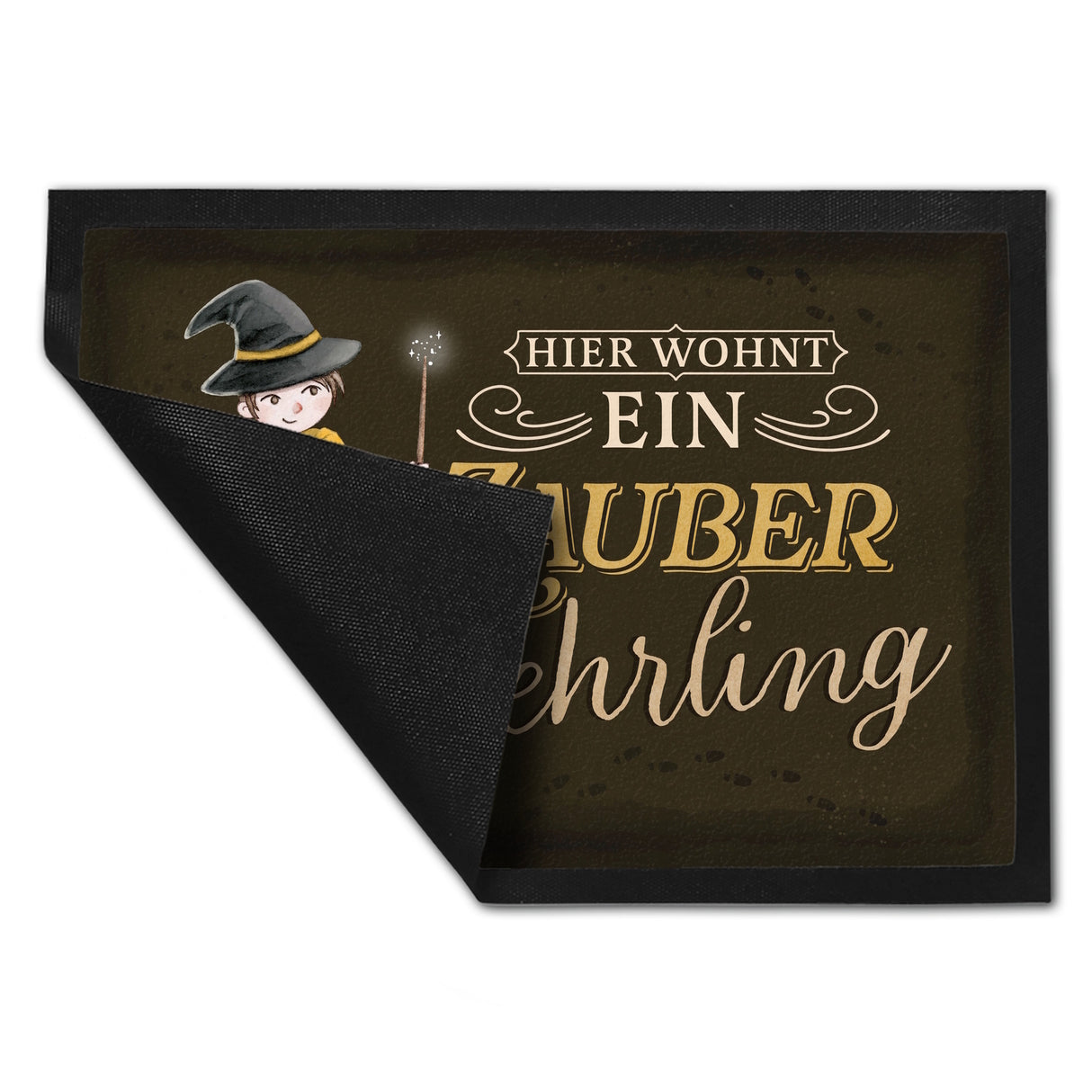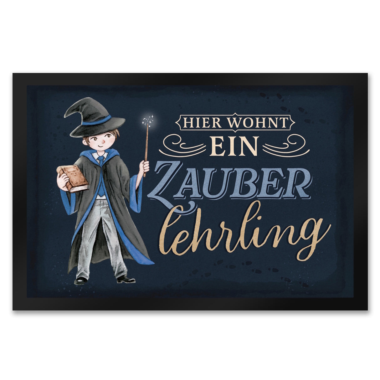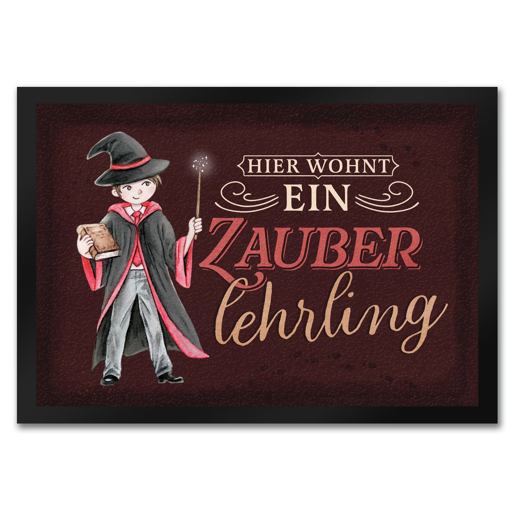 - 1x Zauberlehrling Fußmatte in 35x50 cm mit Zauberschüler mit dunklem Hintergrund in der gewählten Größe