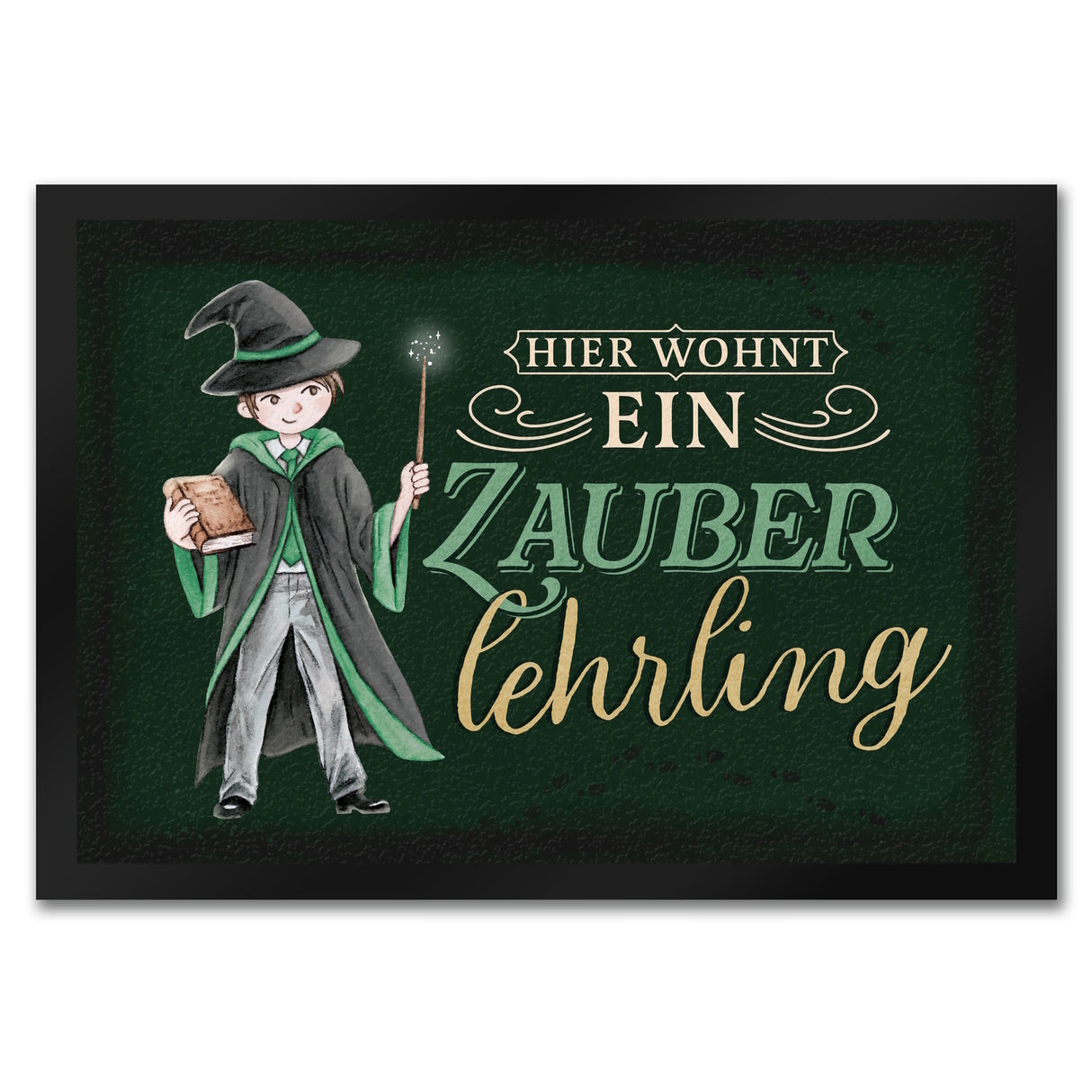 - Die günstige Fußmatte mit dem schicken Zauberschüler-Motiv ist ein echter Hingucker! Sie zeigt einen männlichen Zauberschüler, ausgestattet mit Zauberstab und Buch. Die Fußmatte ist in den Farben Rot, Grün, Blau oder Gelb erhältlich. Fußmatten sind unverzichtbar, um Gäste herzlich willkommen zu heißen und den Dreck draußen zu lassen. Perfekt für jeden, der ein bisschen Magie in seinem Alltag braucht!