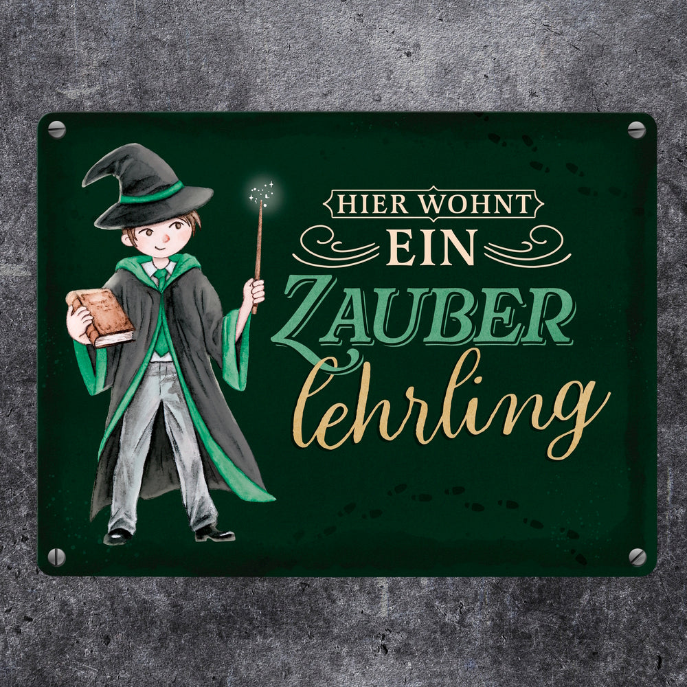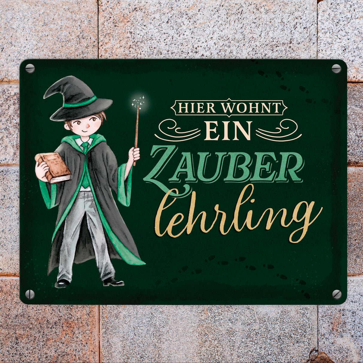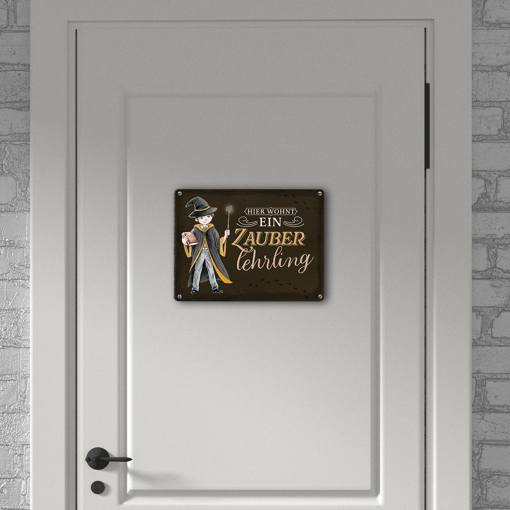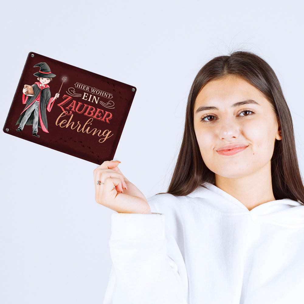 Zauberschülerin Metallschild in 15x20 cm mit Spruch Hier wohnt ein Zauberlehrling