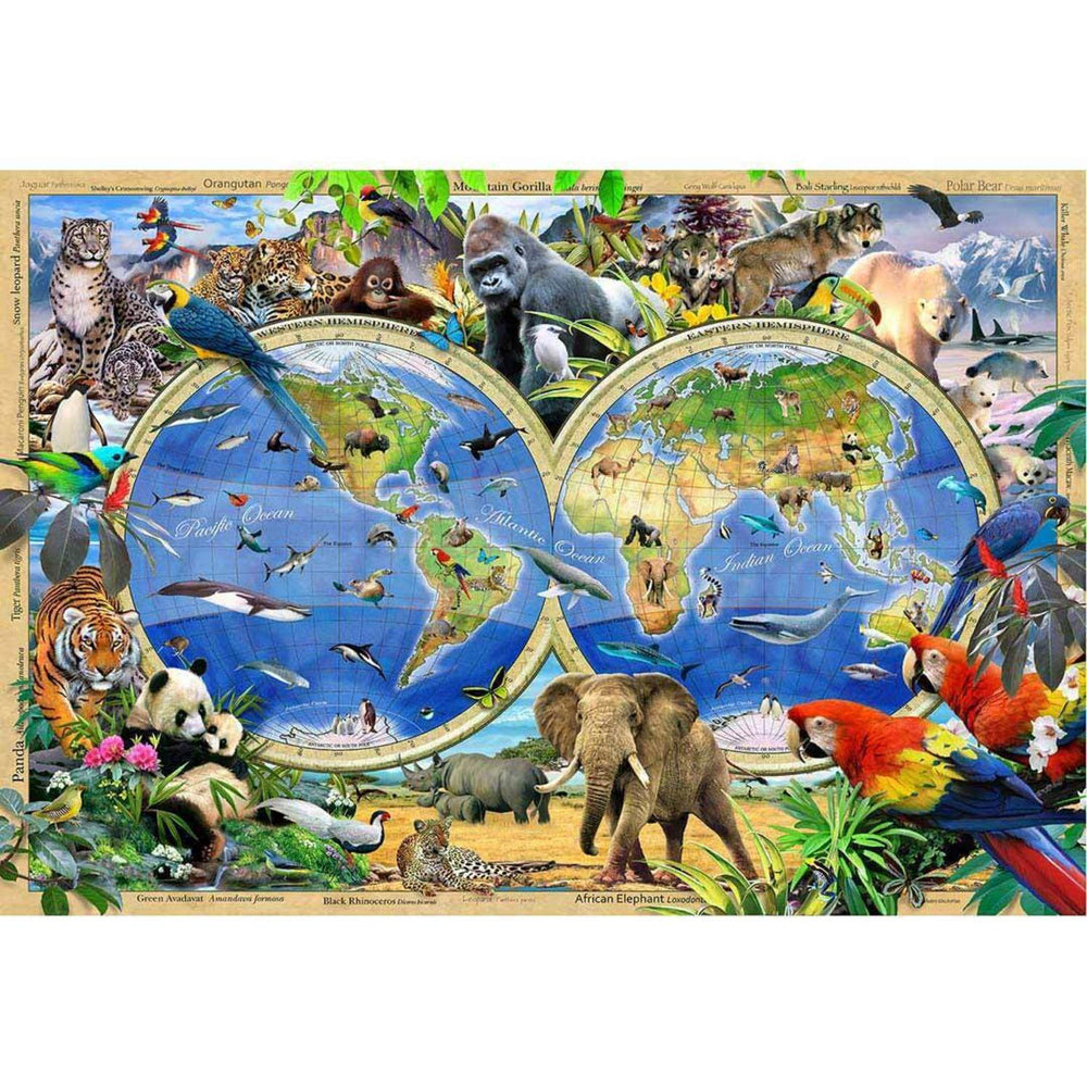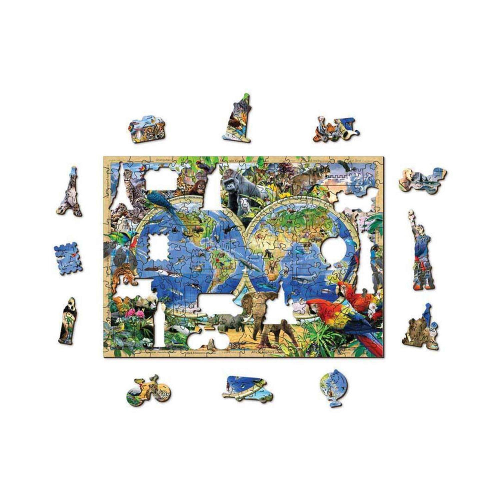 Wildtiere und Weltkarte Puzzle mit 150 Teilen aus Holz