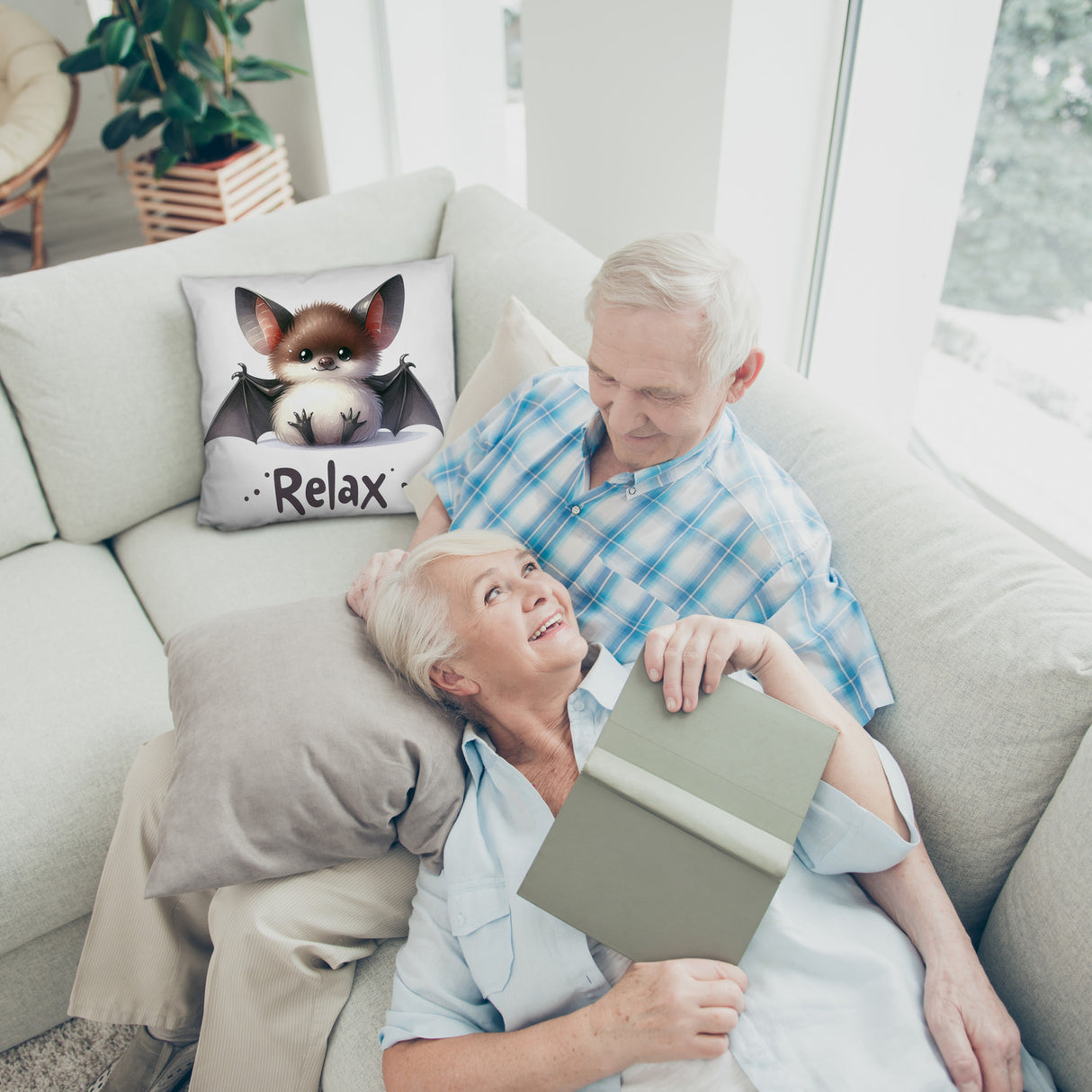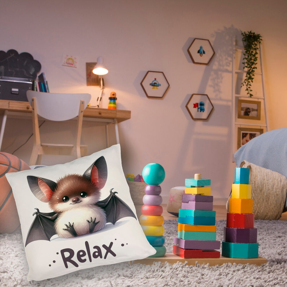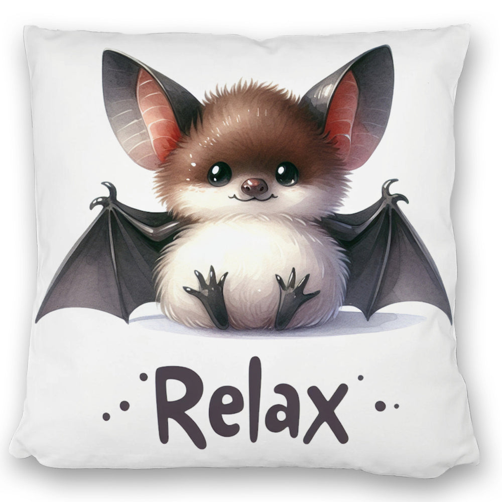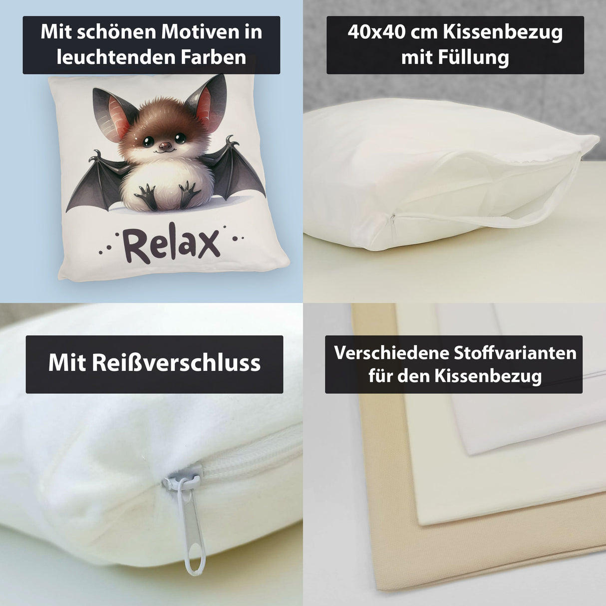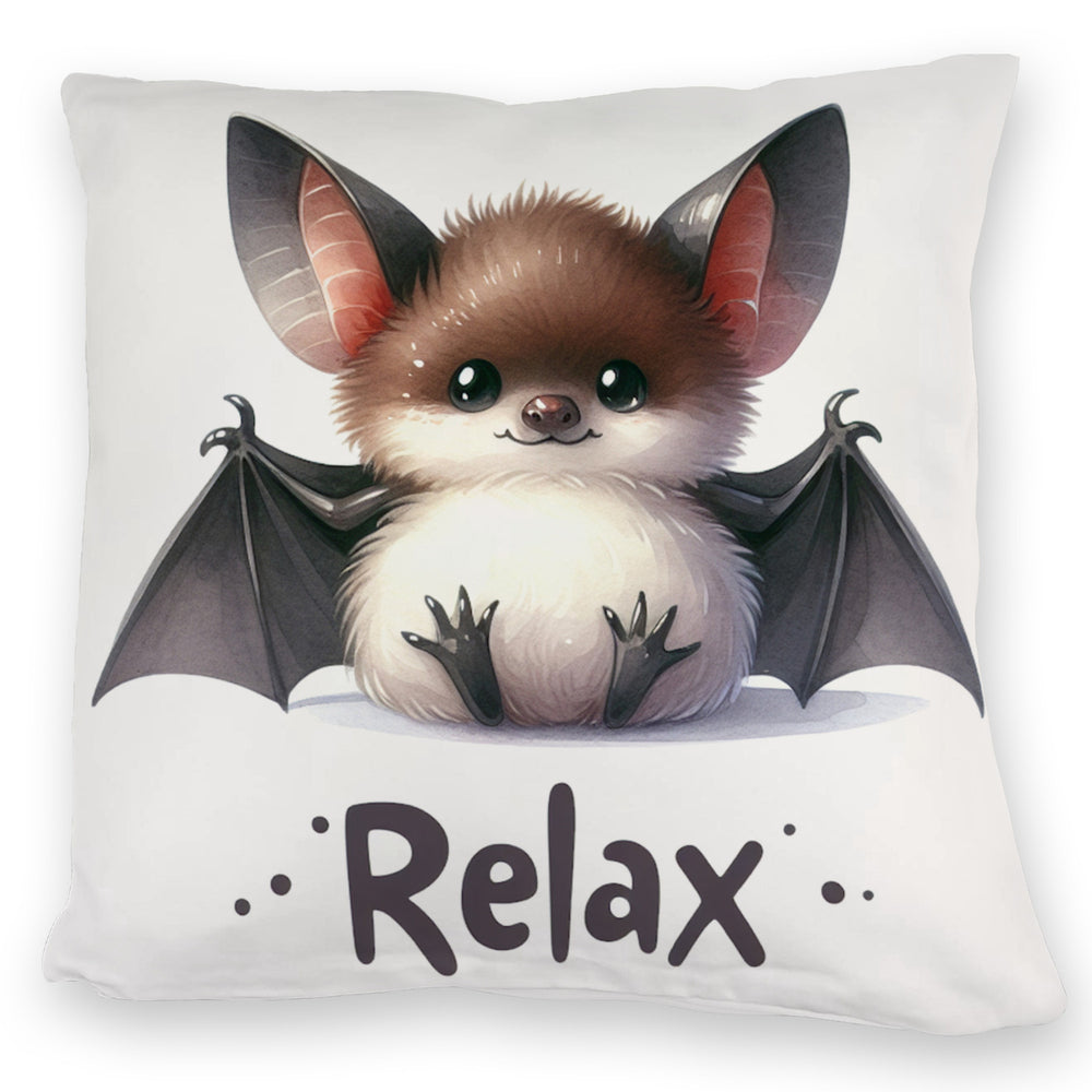 • 1x Baby Fledermaus Kissen mit Spruch Relax in der gewählten Ausführung