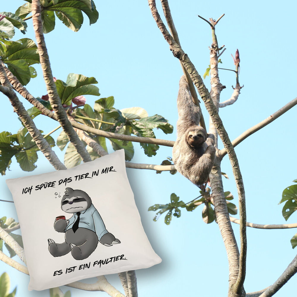 - 1x Ich spüre das Tier in mir Kissen Es ist ein Faultier im Comic Stil in der gewählten Ausführung