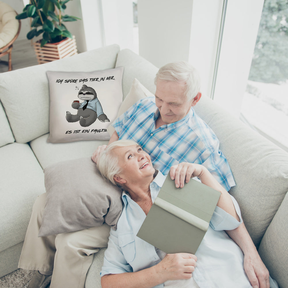 Faulheit Kissen mit Spruch Ich spüre das Tier in mir es ist ein Faultier
