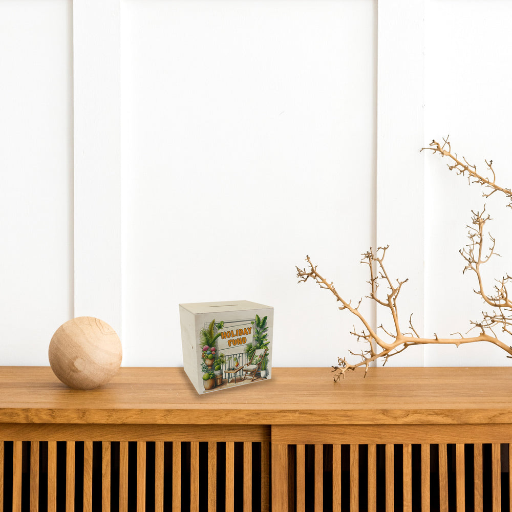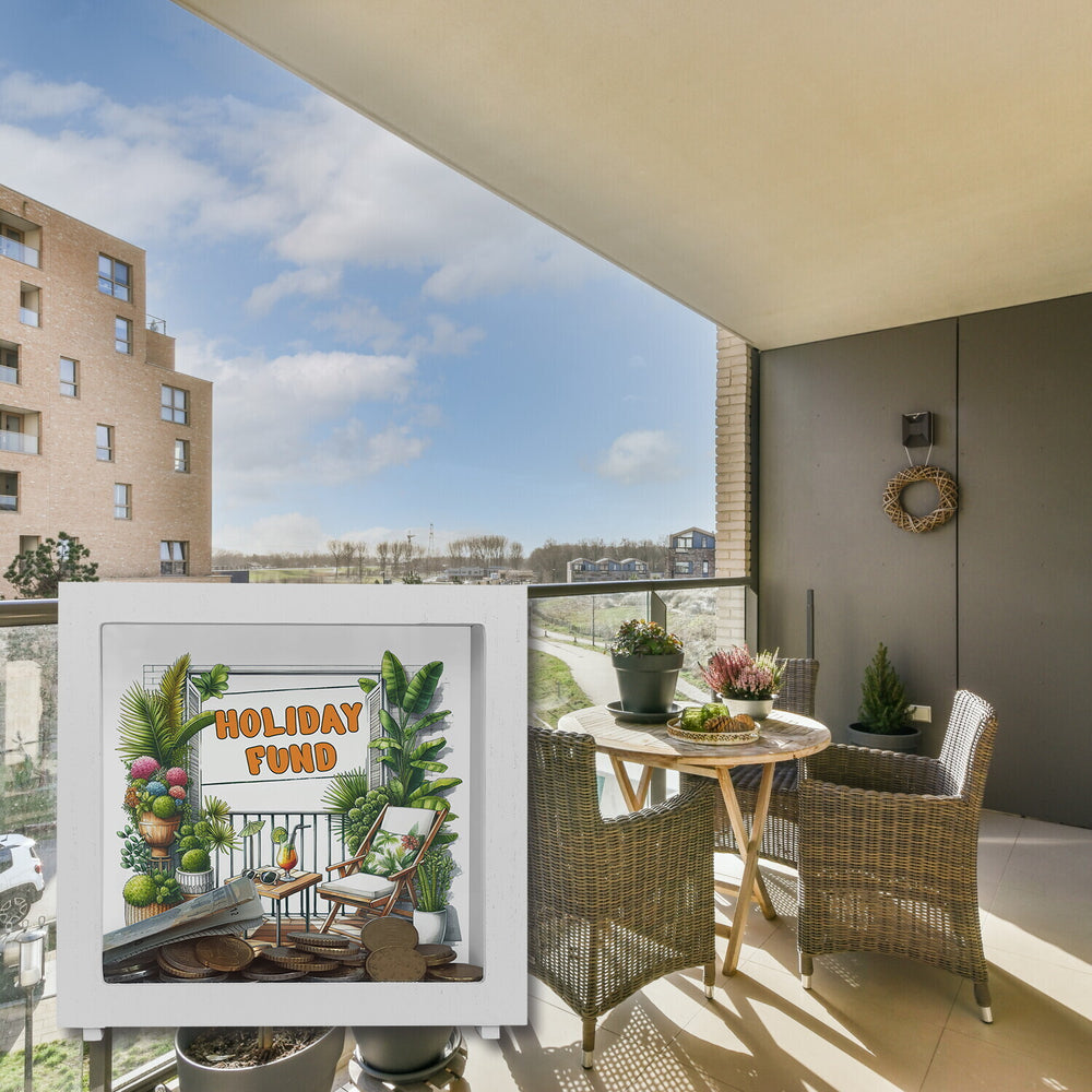 Urlaub auf Balkonien Urlaubskasse Spardose mit Spruch Holiday Fund