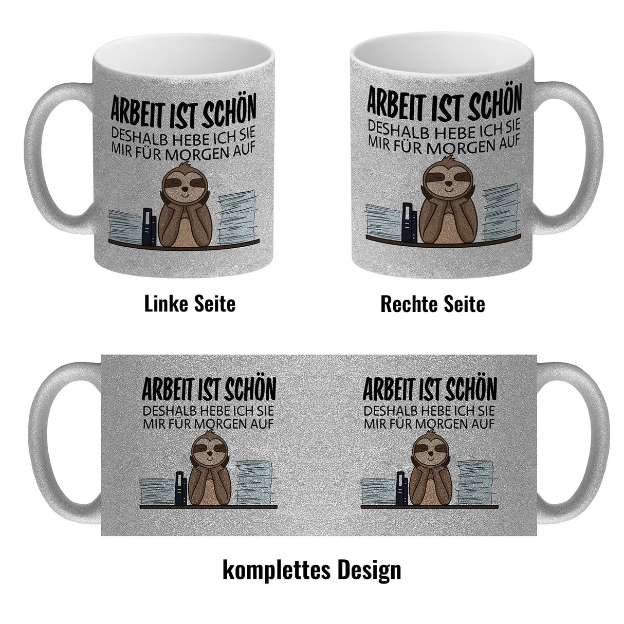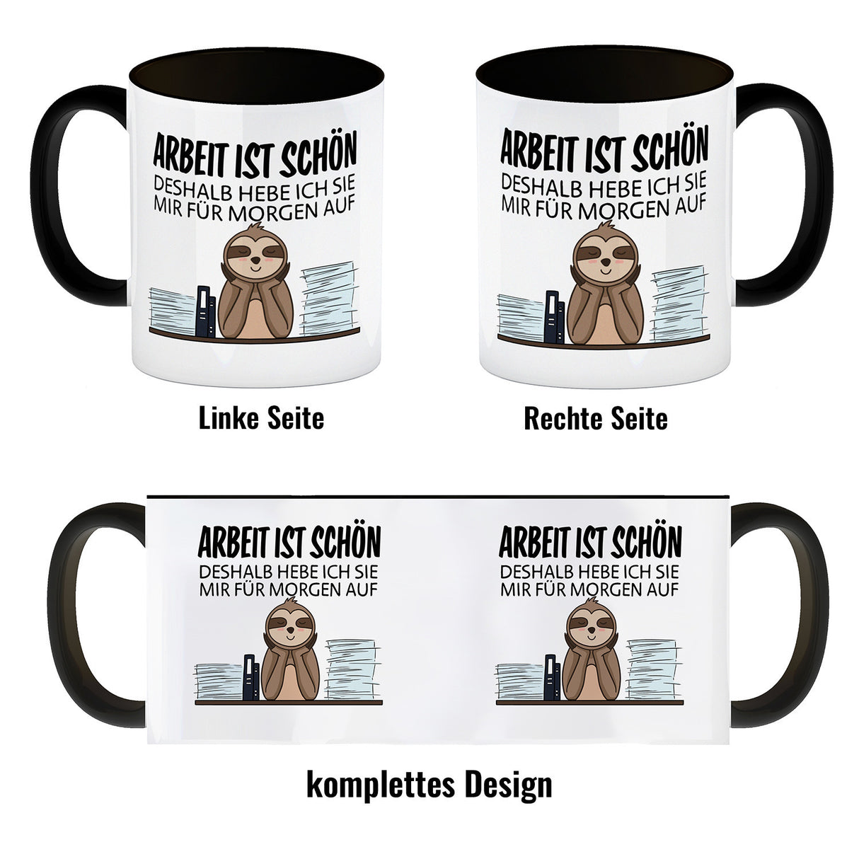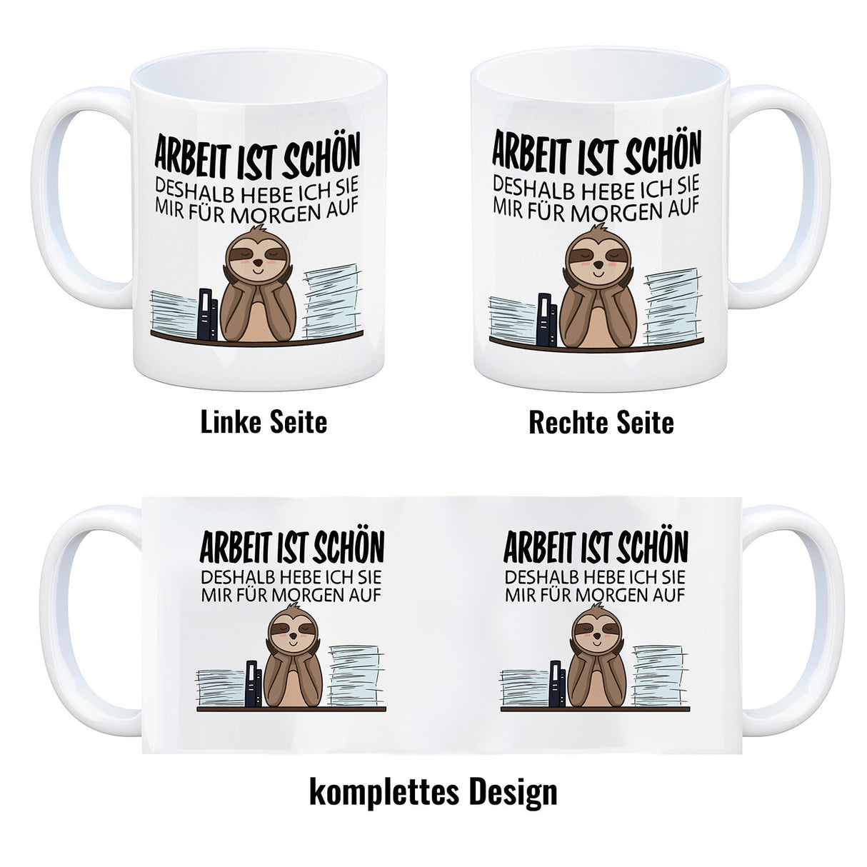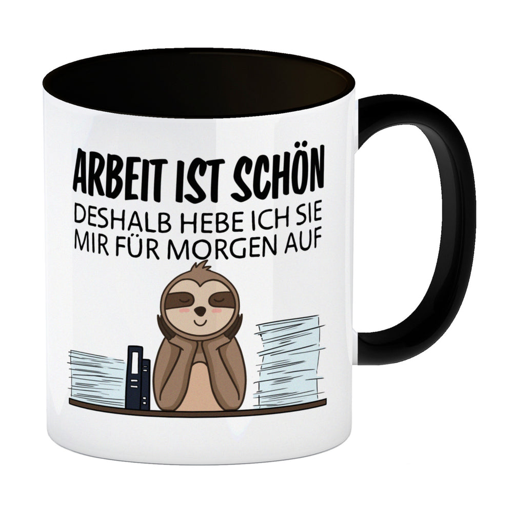 - 1x Arbeit für morgen aufheben Faultier Kaffeebecher in der gewählten Ausführung
