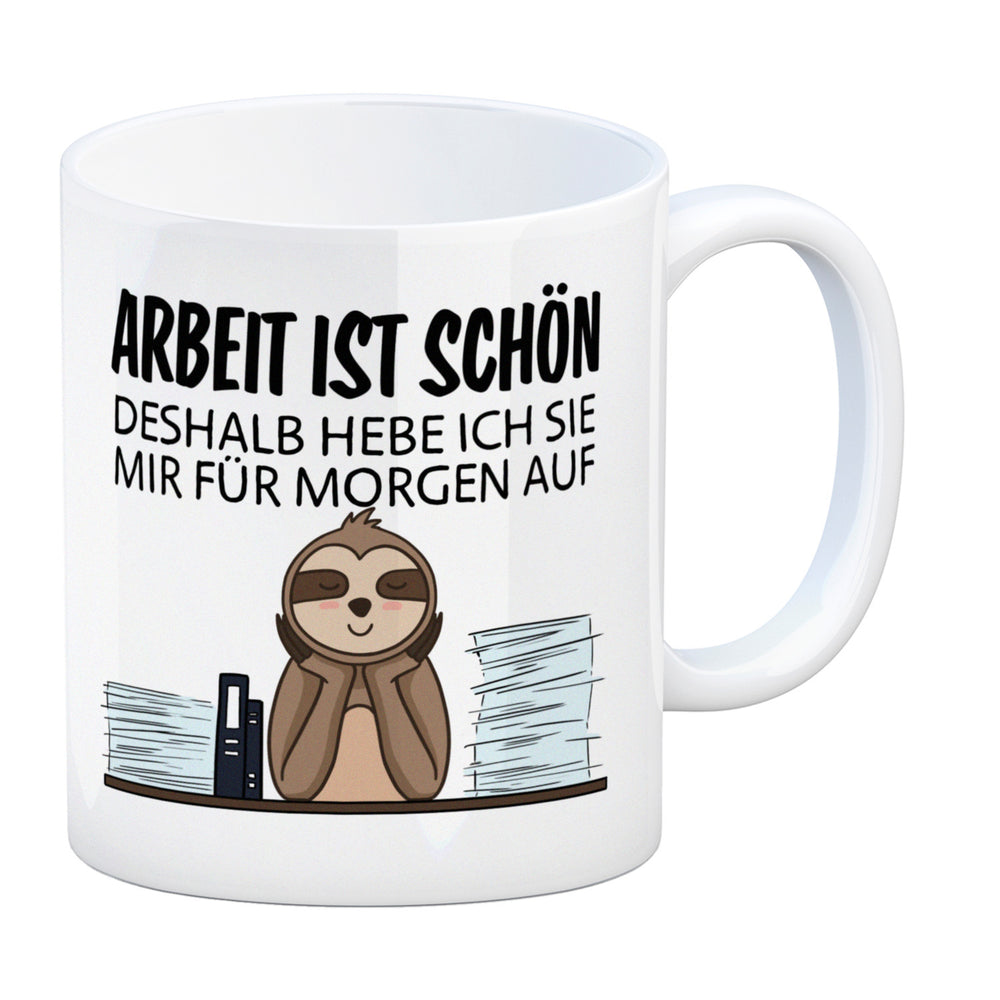 - Du schiebst Arbeit gerne vor dir her oder würdest sie gerne immer erst am nächsten Tag machen? Du kennst Kollegen, die häufig prokrastinieren? Dann ist dieser Kaffeebecher perfekt für dich geeignet. Das lustige Faultier und der witzige Spruch über Arbeit machen den Becher zu einer tollen Geschenkidee.